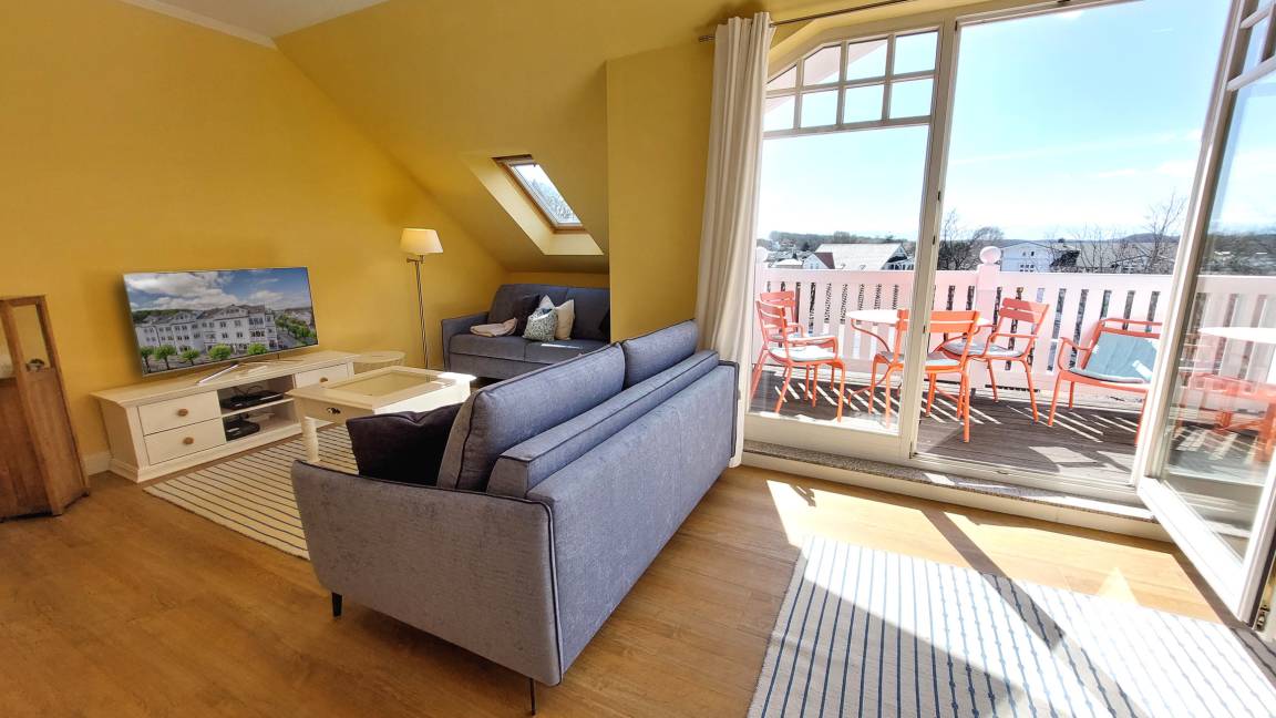 Von den zwei Balkonen nach Südosten und Südwesten haben Sie einen schönen Blick über die Dächer von Binz, die Ausläufer der Granitz und den Schmachter See.
