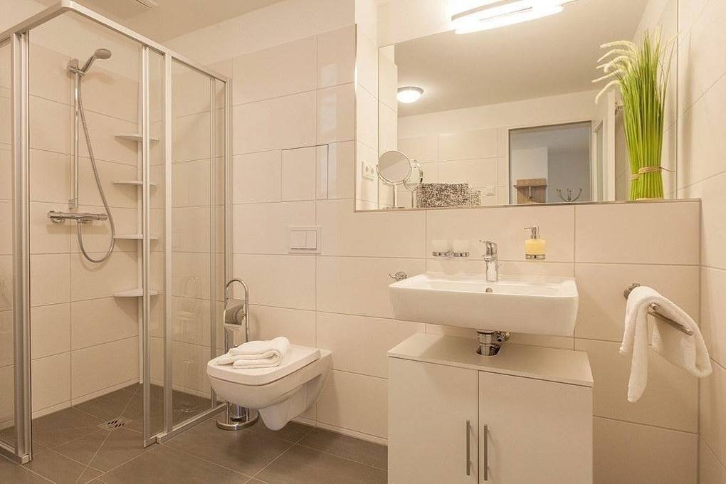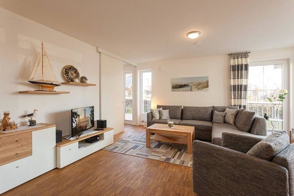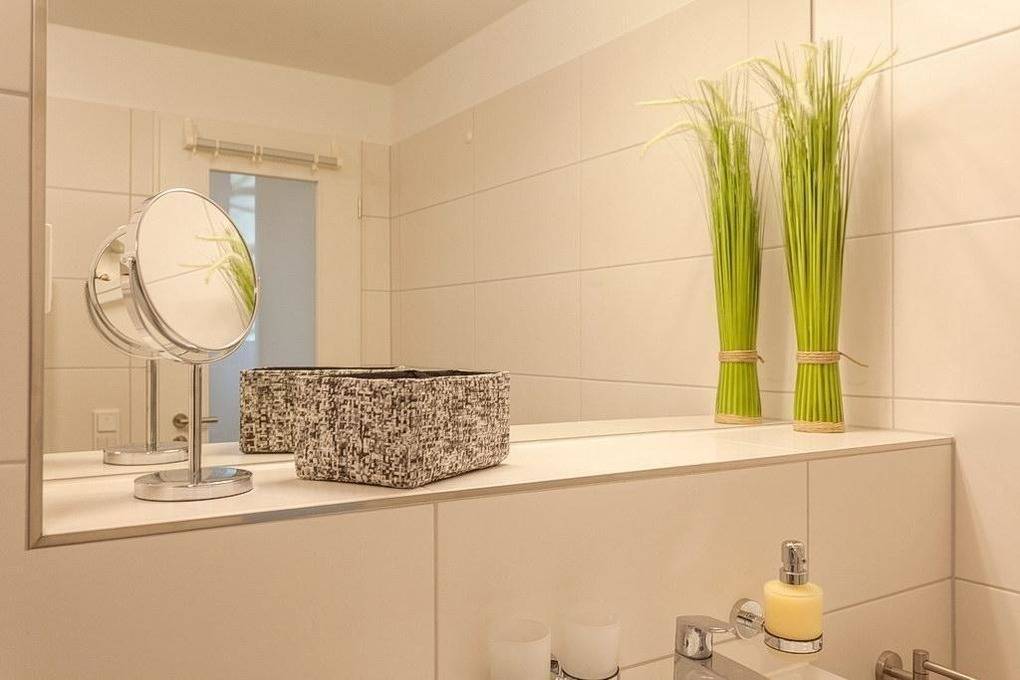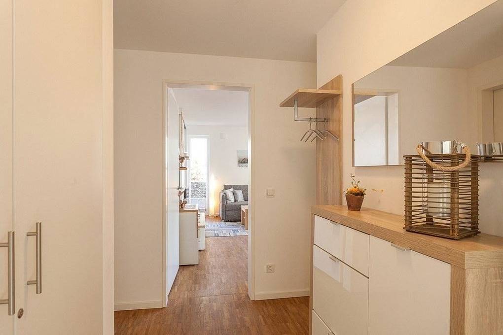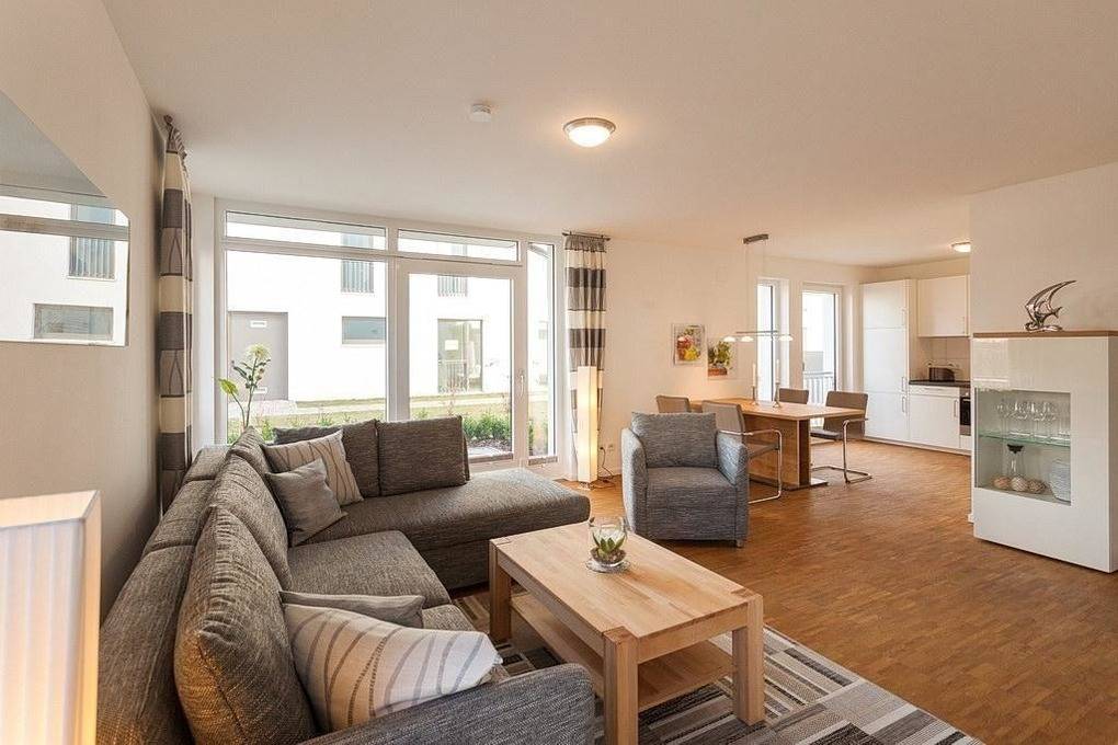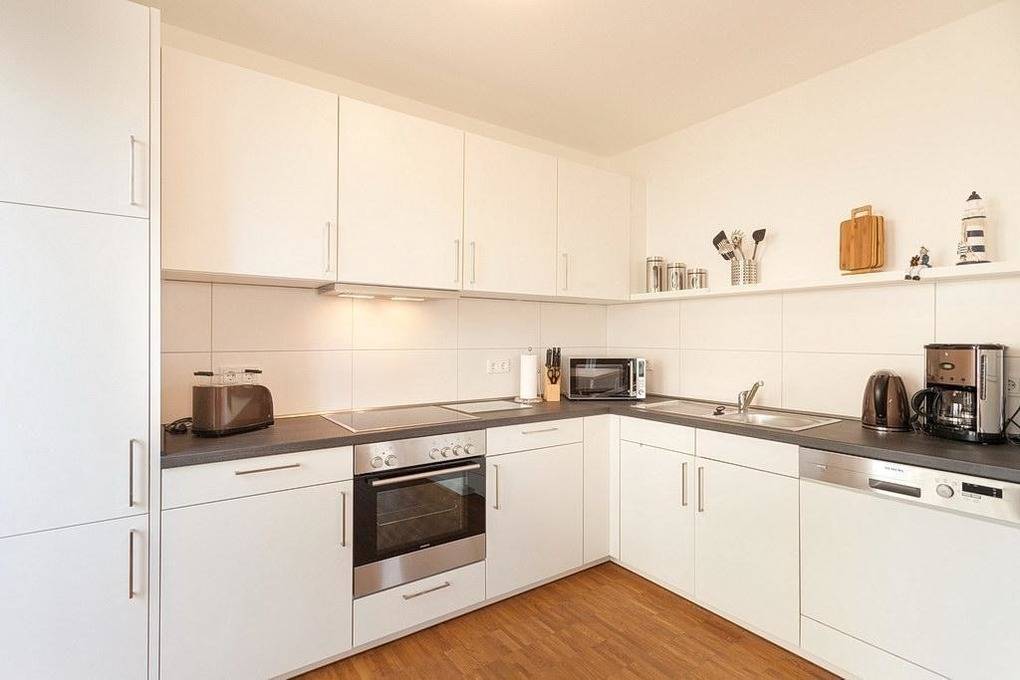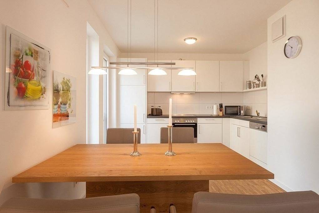 Ein Ferienobjekt in gehobener Ausstattung, modern, mit großen Fensterflächen und somit lichtdurchfluteten Räumen, offenem Grundriss, Terrasse, Fußbodenheizung, Echtholzparkett, barrierefrei, Lift von der Tiefgarage zur Wohnung und hochwertiger Möbelausstattung in der Wohnung, stylisch und geschmackvoll. Die Einbauküche ist mit Markengeräten, Elektroherd, Geschirrspüler, Mikrowelle, Kaffeemaschine, Toaster,...ausgestattet. Und sollten Sie einmal keine Lust mehr haben in der Küche zu stehen, nur 30m entfernt ist eine Bäcker- und Konditorei mit wunderbarer Frühstücksauswahl und 100m weiter ein sehr gutes Fischrestaurant.
