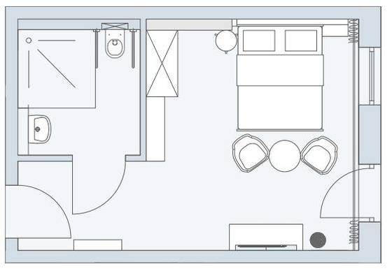 29 m² Privatzimmer ∙ 1 Schlafzimmer ∙ 2 Gäste
