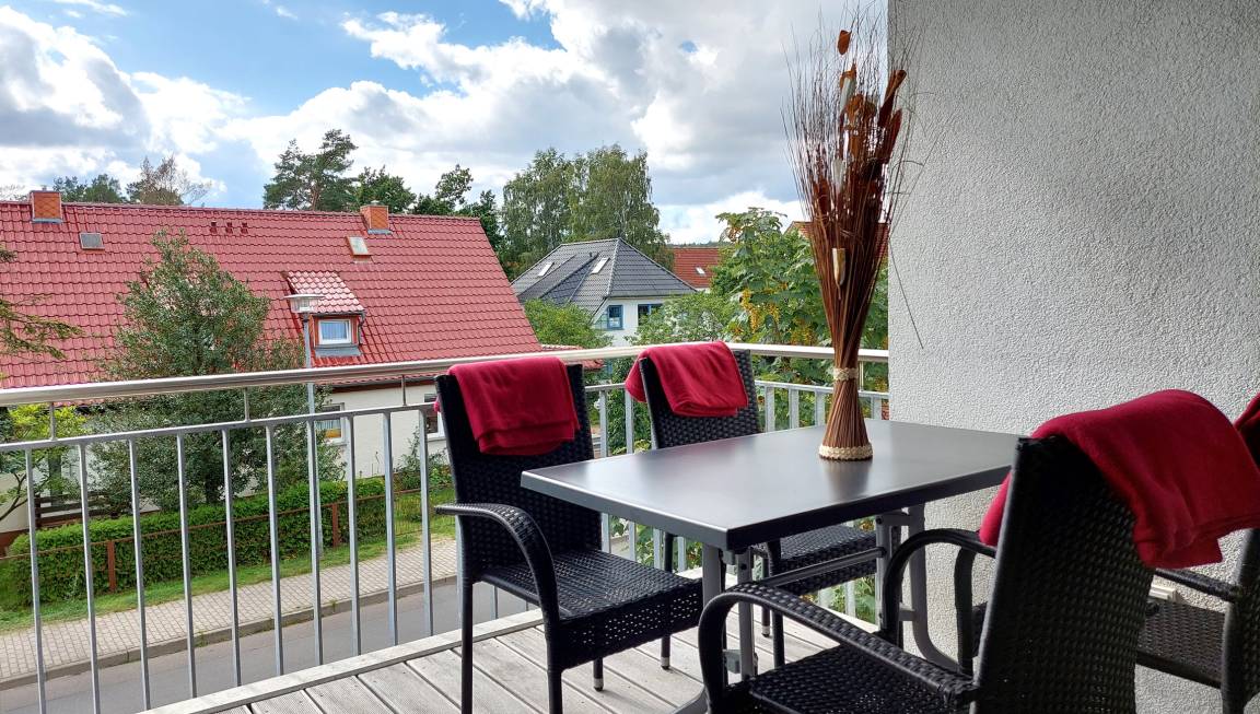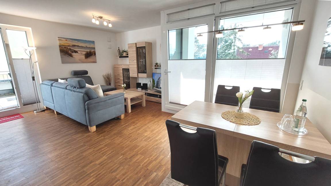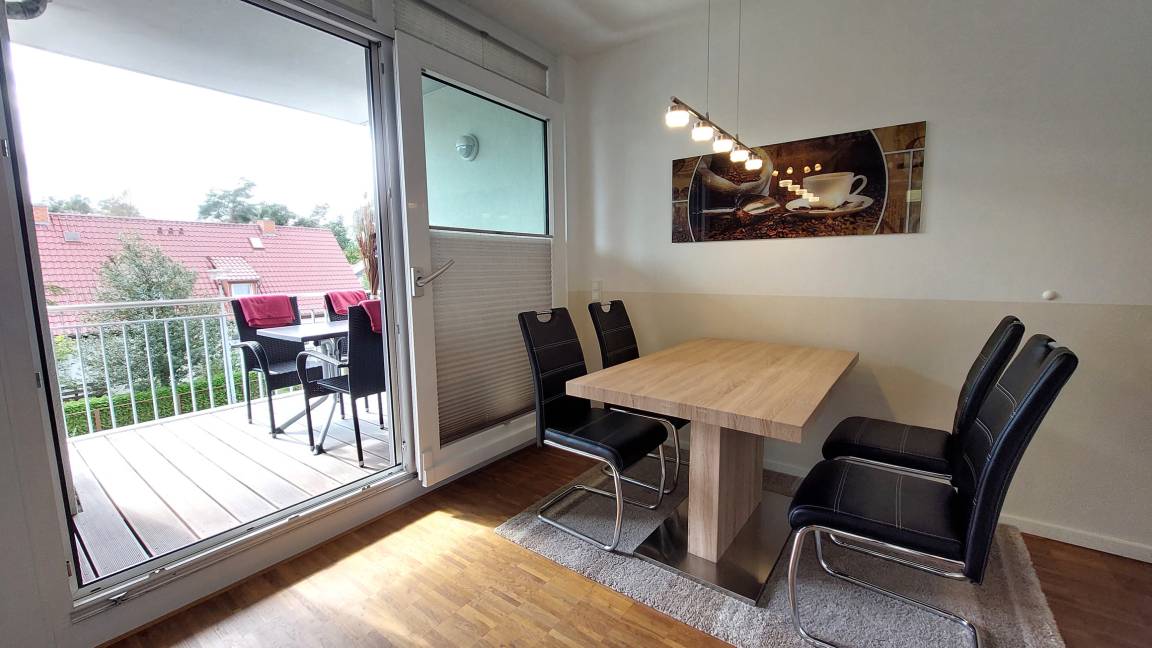 Zudem gibt einen Essbereich und Zugang zum möblierten Südbalkon, mit jeweils 4 Sitzgelegenheiten.