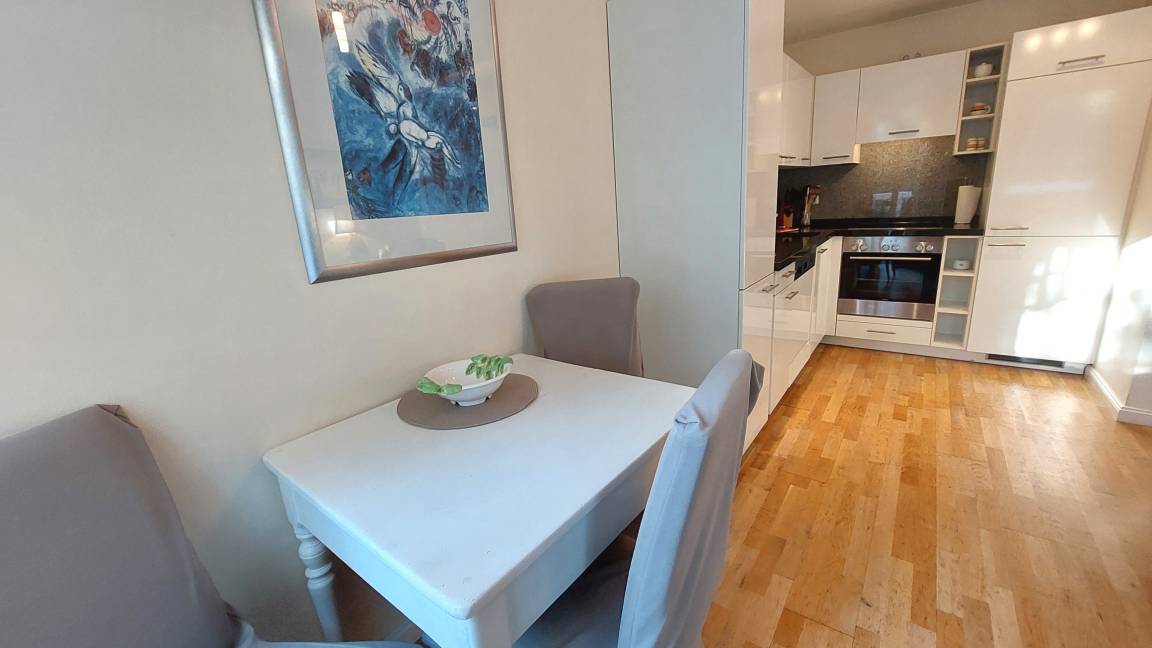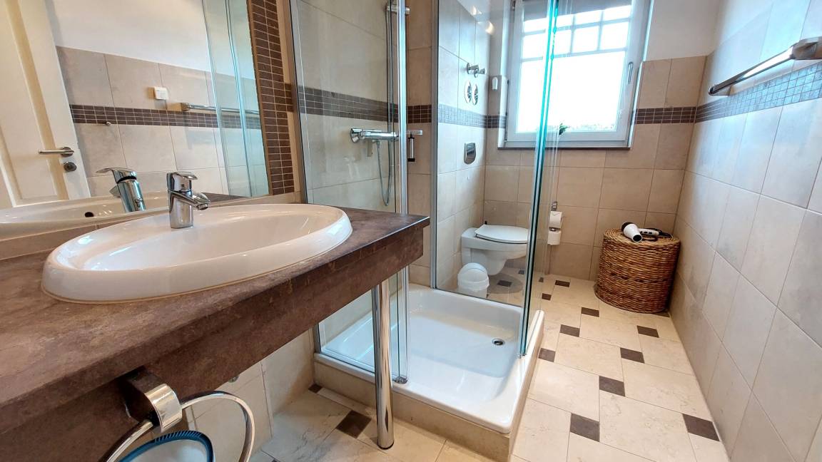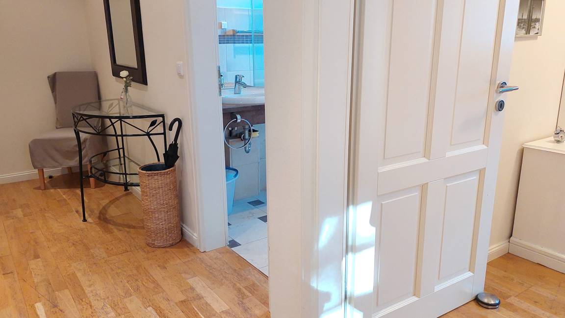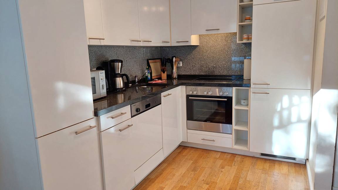 Die Ferienwohnung ist aufgeteilt in einen gemütlichen Wohnraum, eine offene moderne Markeneinbauküche mit Granitarbeitsplatte, ein Schlafzimmer und ein Duschbad mit Waschtisch und WC. Das Wohnzimmer ist mit einem Essplatz und einer Sitzgruppe, die auch eine Schlafgelegenheit für die 3. Person bietet, möbliert. Die technische Ausstattung beinhaltet ein Fernsehgerät. Die Küche ist mit Kühlschrank, Backofen, Ceranfeld, Geschirrspüler und weiteren Elektrogeräten komplett ausgestattet. Das Schlafzimmer verfügt über ein Doppelbett und einen Kleiderschrank. Ab sofort können all unsere Gäste einen kostenfreien WLAN-Zugang nutzen.