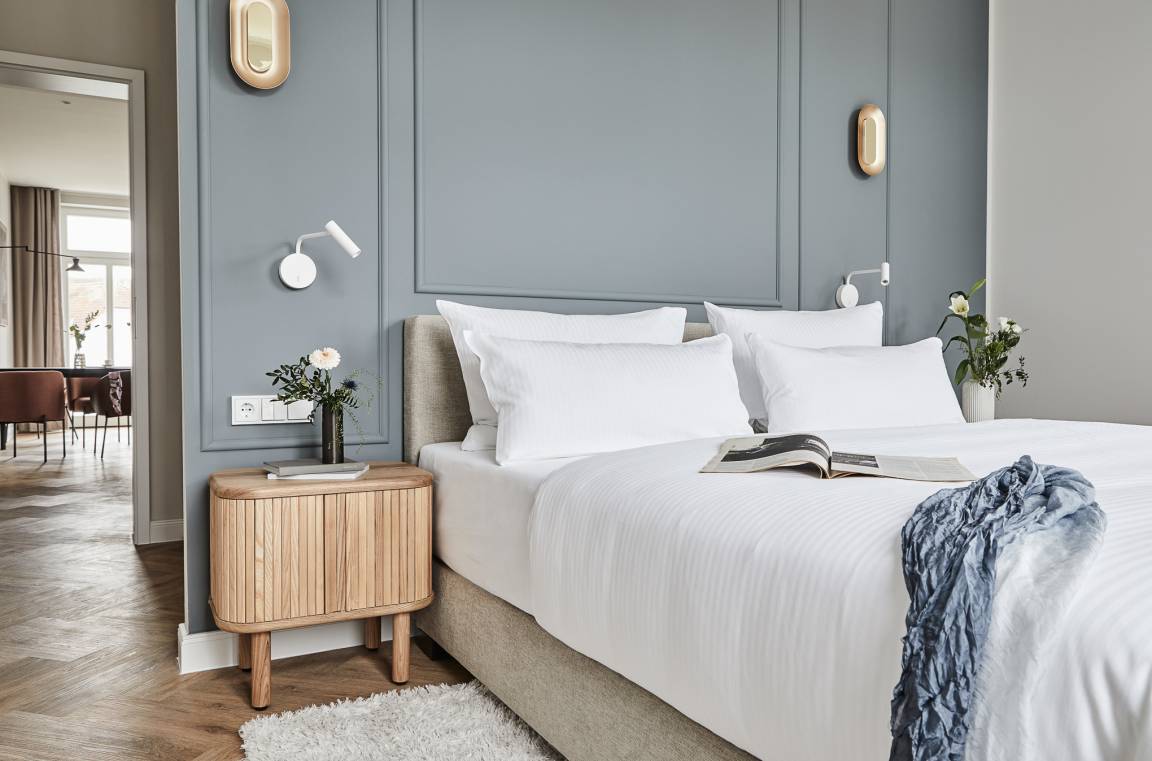 Die Master Wellness Suite mit Balkon und Dampfbad befindet sich in der 2. Etage und verfügt über geräumige ca. 75 m², über 2 Schlafzimmer und einen separaten Wohnraum, einer offenen Küchenzeile sowie 2 Badezimmer und 1 Dampfbad.