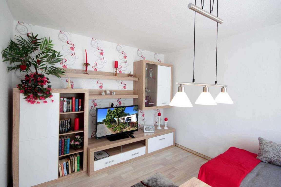 Von hier aus gelangen Sie in den modernen Wohnraum mit Flachbild-TV und Sitzecke. Ein kostenloser WLAN- Zugang ist vorhanden.