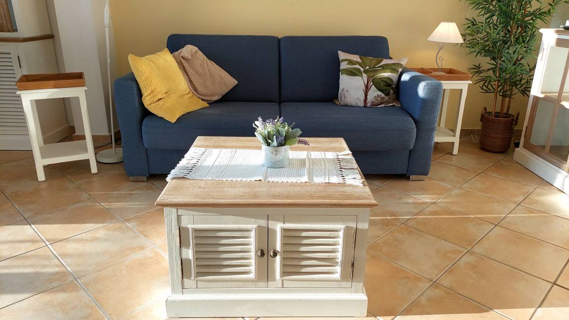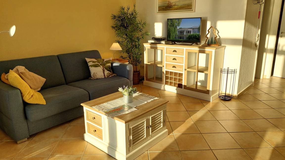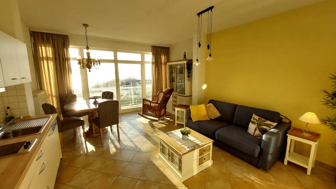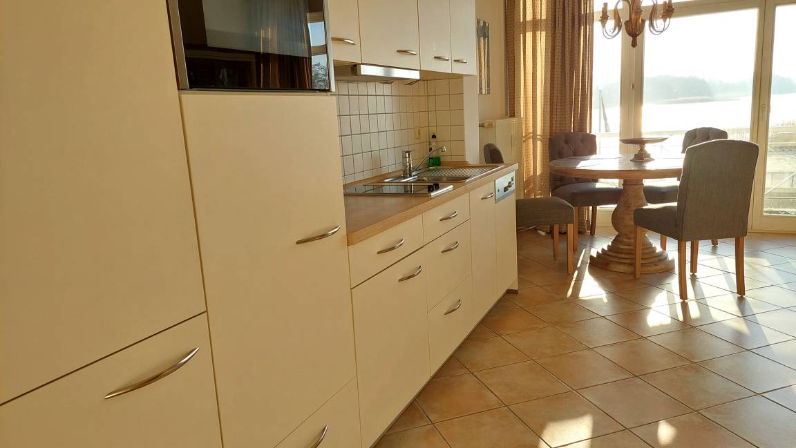 Im Wohnbereich könnten bis zu 2 weitere Personen auf dem Schlafsofa nächtigen. Es gibt einen gemütlichen Essbereich und die moderne Küchenzeile verfügt über Geschirrspüler, Backofen, 2-Platten-Cerankochfeld sowie über einen Kühlschrank mit Gefrierfach.