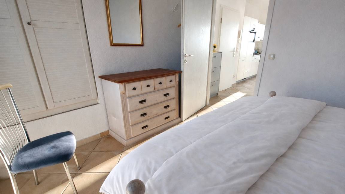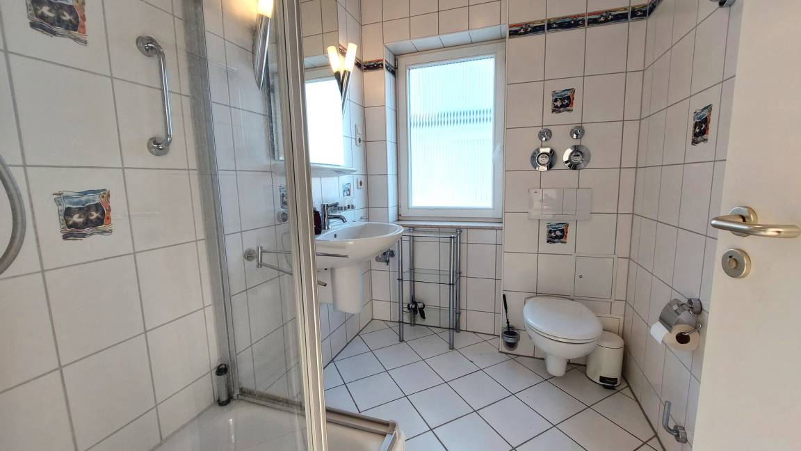 Das Nichtraucher-Appartement verfügt über ein Tageslichtbad mit Dusche und ein Schlafzimmer mit Doppelbett.