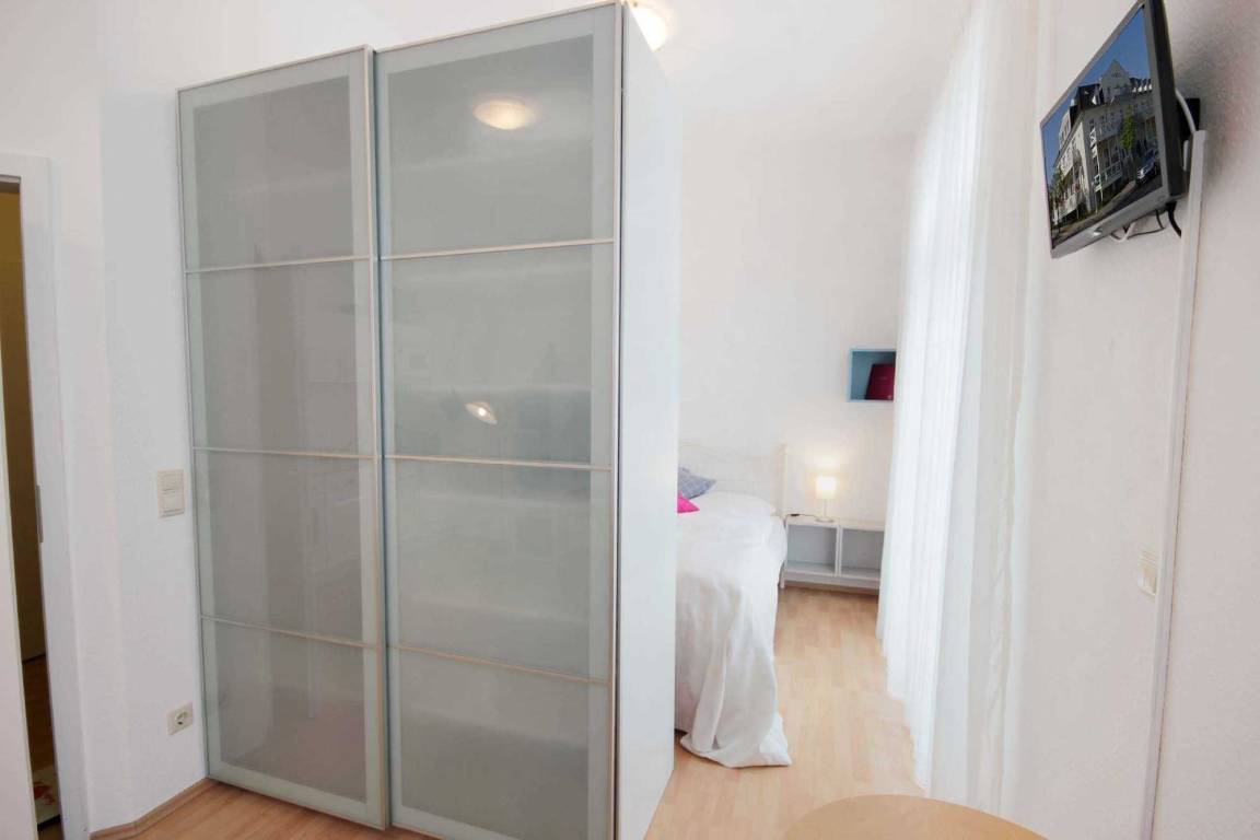 Ihre 1-Zimmerwohnung 26RB8 mit Balkon hat eine Größe von ca. 32 qm und ist für 2 Personen eingerichtet. Sie befindet sich im 1. Obergeschoss des Hauses.