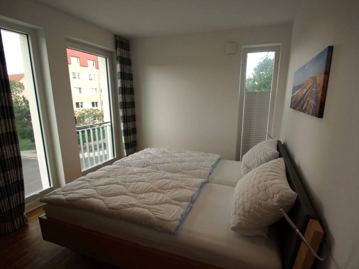 Die Wohnung verfügt über einen vorgelagerten Flur mit Garderobe, einen großzügigen Wohnbereich mit Wohnküche und einem Essplatz, zwei Schlafzimmer, ein Badezimmer sowie ein Gäste-WC. Im Wohnbereich erwartet Sie eine gemütliche Sitzecke, welche bei Bedarf auch eine Schlafmöglichkeit für eine fünfte Person bietet. Die technische Einrichtung umfasst einen Flachbildfernseher, eine Stereoanlage sowie einen WLAN-Anschluss. Zum gemeinsamen Verweilen lädt der große sonnige Balkon mit Möblierung ein (nicht barrierefrei erreichbar). Im Küchenbereich finden Sie einen Backofen, Mikrowelle, Cerankochfeld, Geschirrspüler, Kühlschrank mit Gefrierfach, Kaffeemaschine, Toaster und weitere Küchenhelfer vor. Beide Schlafzimmer verfügen über ein Doppelbett, Kleiderschrank sowie Verdunklungsstoffe für einen erholsamen Schlaf. Zusätzlich steht Ihnen im zweiten Schlafzimmer ein weiterer Flachbildfernseher zur Verfügung. Das barrierefreie Tageslichtbad ist mit einer ebenerdigen Regendusche mit Duschabtrennung, Waschtisch, Kosmetikspiegel, Fön, WC mit Haltegriff und einer eigenen Waschmaschine ausgestattet.