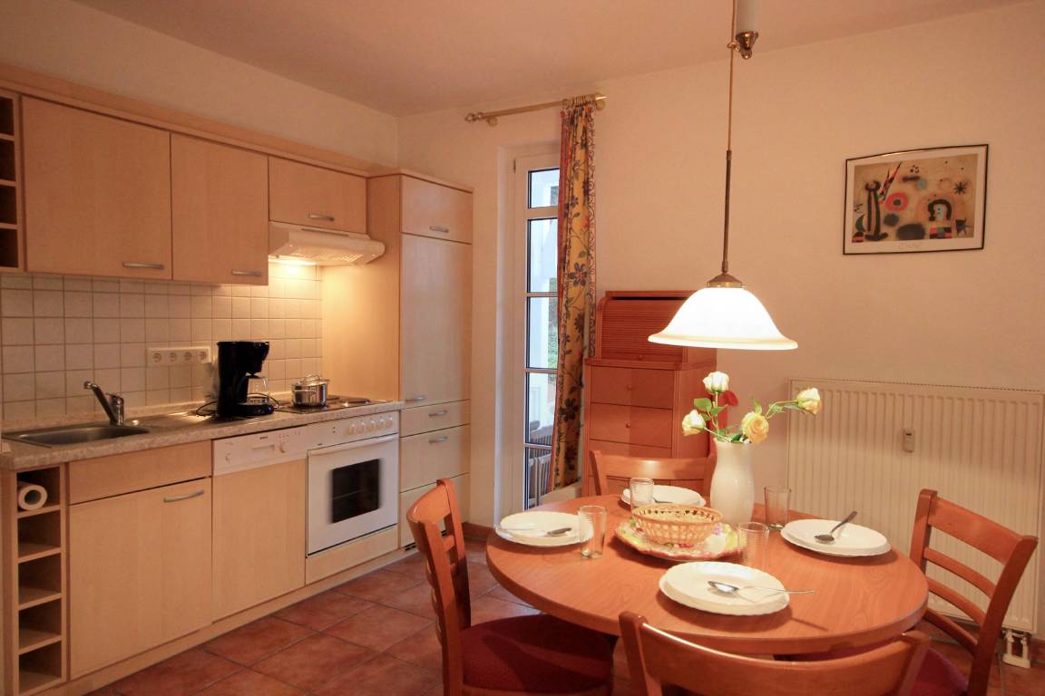 Ihre gemütliche Ferienwohnung 9RB2 mit eigener Terrasse befindet sich im Erdgeschoss der Villa Dornbusch. Die 2 Zimmer - Wohnung hat eine Größe von ca. 44 qm und ist mit bis zu 4 Personen belegbar.