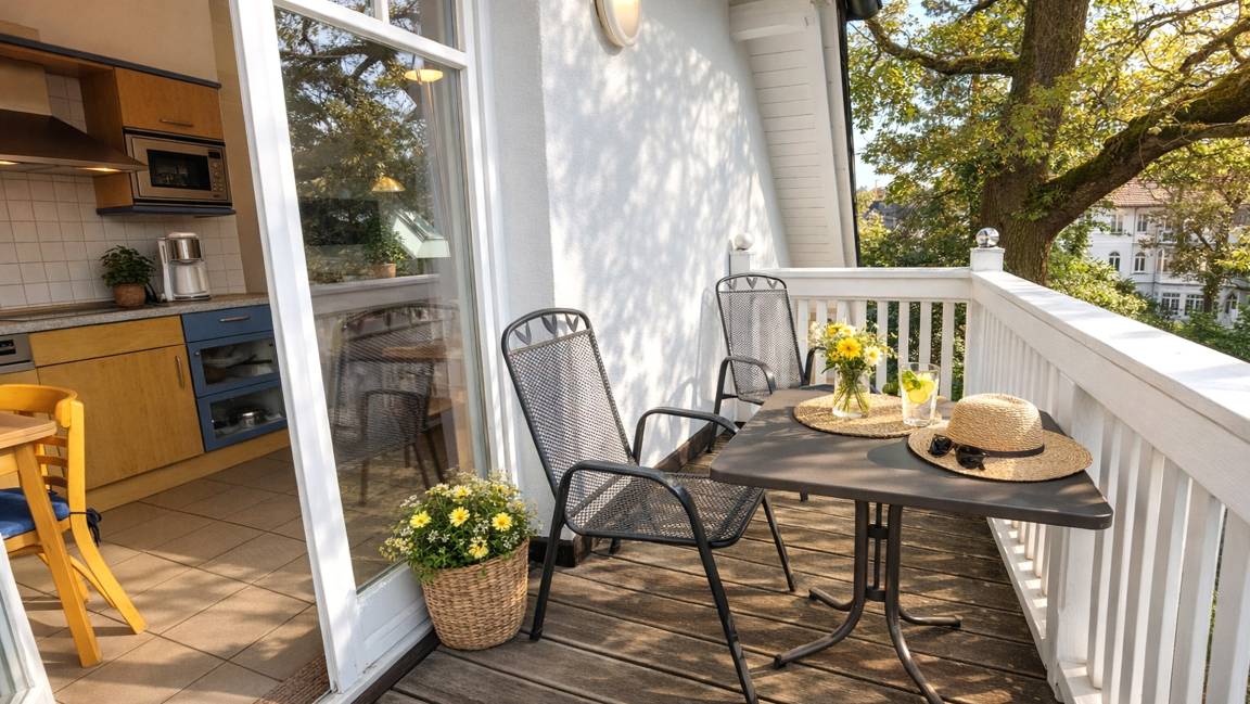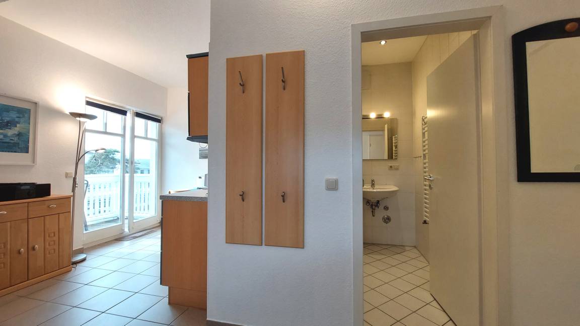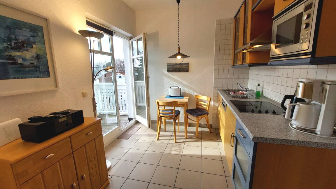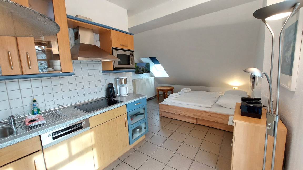 Das helle Studio 90015 befindet sich im 2. Obergeschoß des Hauses. Die 1 Zimmer - Wohnung hat eine Größe von ca. 25 qm. Im Wohn-/Schlafraum mit integrierter Kochzeile befindet sich ein Doppelbett samt Nachtischen. Ein separater Essplatz ist ebenfalls vorhanden. Zur technischen Ausstattung gehören kostenfreies WLAN, ein Flachbild-TV und eine Stereoanlage mit Bluetooth-Funktion. Die Kochzeile ist mit Geschirrspülmaschine, Mikrowelle, Cerankochfeld, Kühlschrank und diversen Kleingeräten ausgestattet. Ein Badezimmer mit Dusche, Waschtisch und WC steht zu Ihrer Verfügung. Bei schönem Wetter bietet sich der Balkon mit Blick auf das Binzer Leben an.