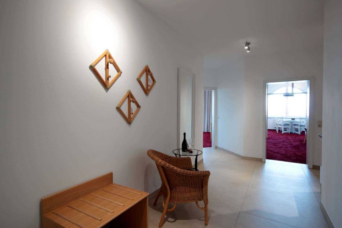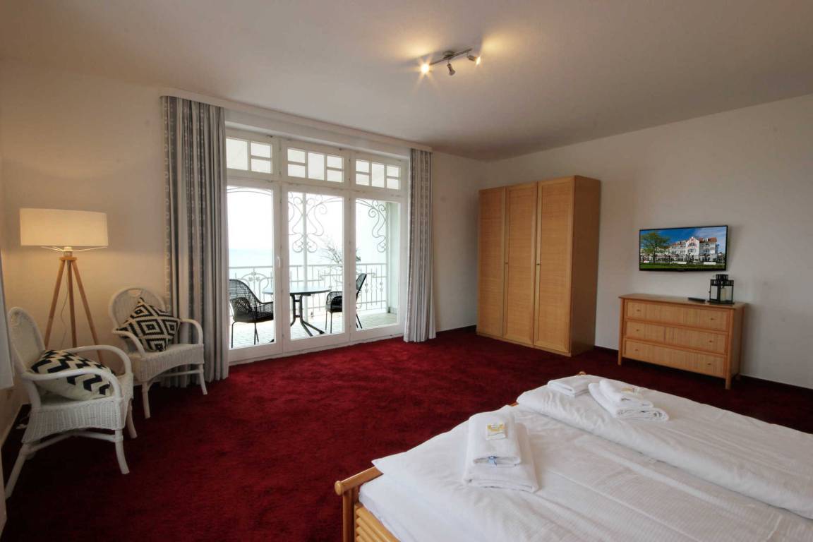 Ihre moderne und großzügige 2-Zimmer Meerblick-Ferienwohnung 225RB23 befindet sich im 2. Obergeschoss, ist ca. 68 qm groß und für bis zu 6 Personen gut geeignet. Neben dem Wohnbereich mit Schlafsofa, auf dem die 3. und 4. Person gut schlafen können, gehört ein Flachbild TV sowie WLAN zur Nichtraucherwohnung. Der Wohnbereich ist optisch vom Wohnerker mit Essbereich, Meerblick und zusätzlicher Schlafcouch für 2 weitere Personen getrennt. Vom separaten Schlafzimmer mit Doppelbett und zusätzlichem TV gelangen Sie auf den Balkon und können einen wundervollen Meerblick genießen. Ebenfalls gibt es eine voll ausgestattete integrierte Küchenzeile mit Geschirrspüler, Nespresso-Maschine, Backofen, Wasserkocher, Toaster und Kaffeemaschine nutzen. Das Badezimmer erwartet Sie mit Waschtisch, WC und Dusche. Haustiere sind herzlich willkommen.