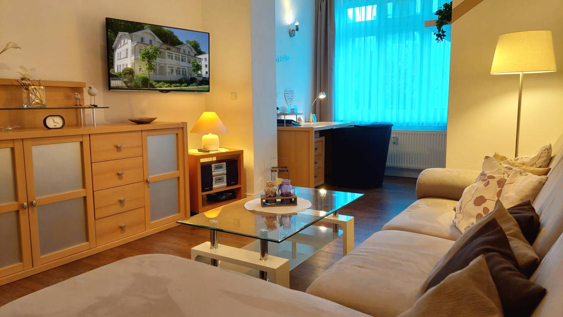 Ein kleines Haustier (bis 10 kg) ist erlaubt. Sie befindet sich im Erdgeschoss und verfügt über einen Balkon. Im gemütlichen Wohnraum finden Sie eine Sitzgruppe mit Schlafsofa welches Platz für die 3. und 4. Person bietet, einen Flachbild-TV, und eine Musikanlage. Das separate Schlafzimmer verfügt über ein Doppelbett, einen Flachbild-TV und einen großen Kleiderschrank. Die Küche ist mit Ceran-Einbauherd , Mikrowelle, Geschirrspülmaschine, Kaffeemaschine, Wasserkocher und diversen anderen Küchenhelfern perfekt ausgestattet. Des Weiteren steht Ihnen ein helles Duschbad mit WC zur Verfügung. Falls doch einmal Homeoffice ansteht, bietet die Wohnung neben schnellem WLAN auch einen Schreibtisch, welcher "Workation" problemlos möglich macht. Ein PKW-Stellplatz am Haus zur Verfügung.