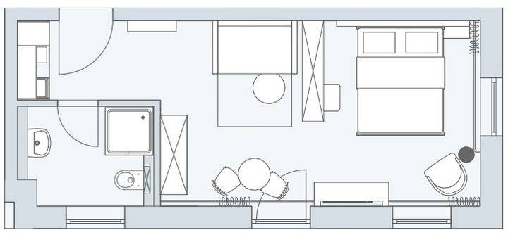 + Es ist in jedem Appartement (außer dem barrierefreien) eine Küche vorhanden mit Backofen/ Mikrowelle und Kochgelegenheit.