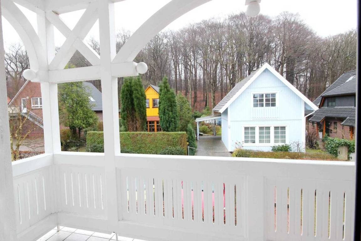 Die Unterkunft befindet auf dem Klünderberg. Die leichte Hanglage auf einem der Binzer Hügeln garantiert aus vielen Wohnungen schöne Ausblicke auf den Binzer Ortskern, teilweise bis zur Ostsee.