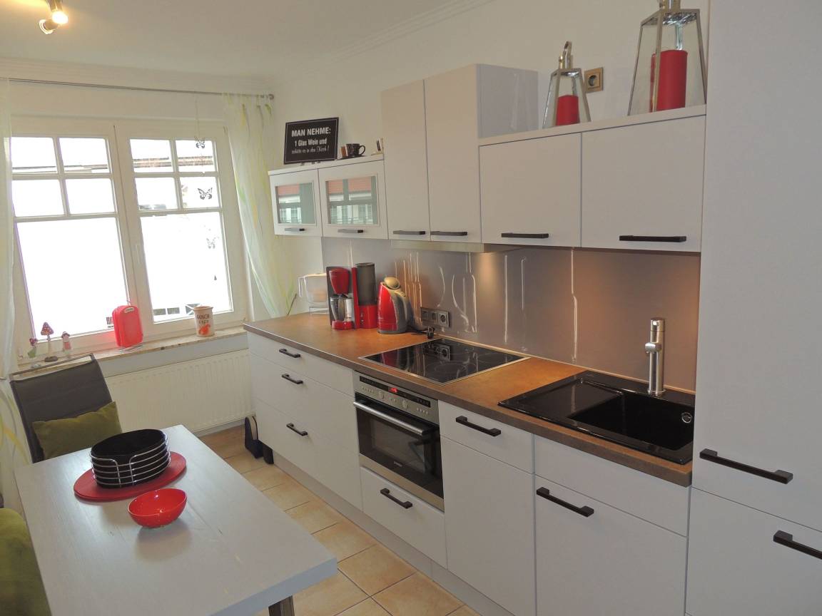 Die separate Küche beinhaltet alles, wie es ein Jeder von zu Hause kennt. Einbauküche mit Backofen, Ceranfeld, Kühlschrank, Gefrierschrank, Mikrowelle sowie sämtliche Klein-Elektrogeräte (Kaffeemaschine, Toaster etc.). Ein kleiner Elektrogrill für den Sommerabend auf dem Balkon ist ebenfalls vorhanden.