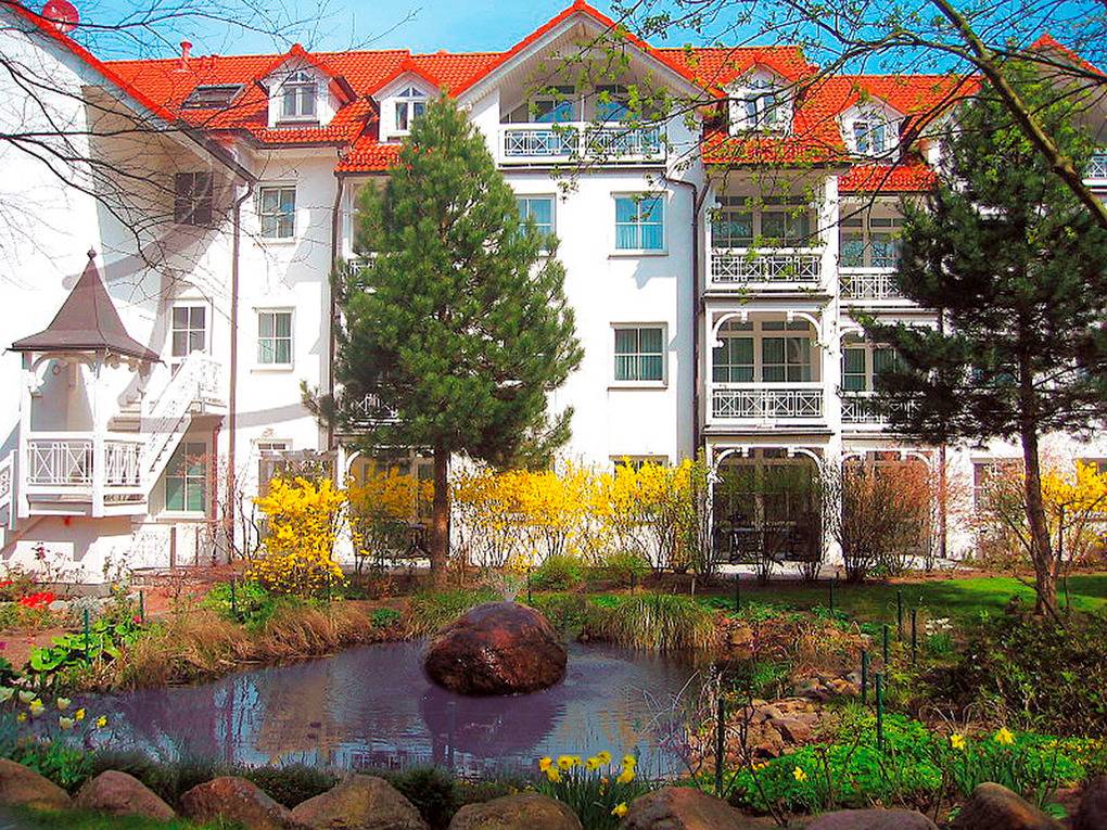 Haus: Gepflegte Apartmentanlage in parkähnlicher Umgebung. Komfortable Wohnungen mit ansprechender Einrichtung. Kostenloser Internetzugang über W-Lan. Zentralheizung. Fahrradkeller. 1 Pkw-Stellplatz/Fewo im Mietpreis inklusiv (nur Pkws bis 1,90 m Höhe).