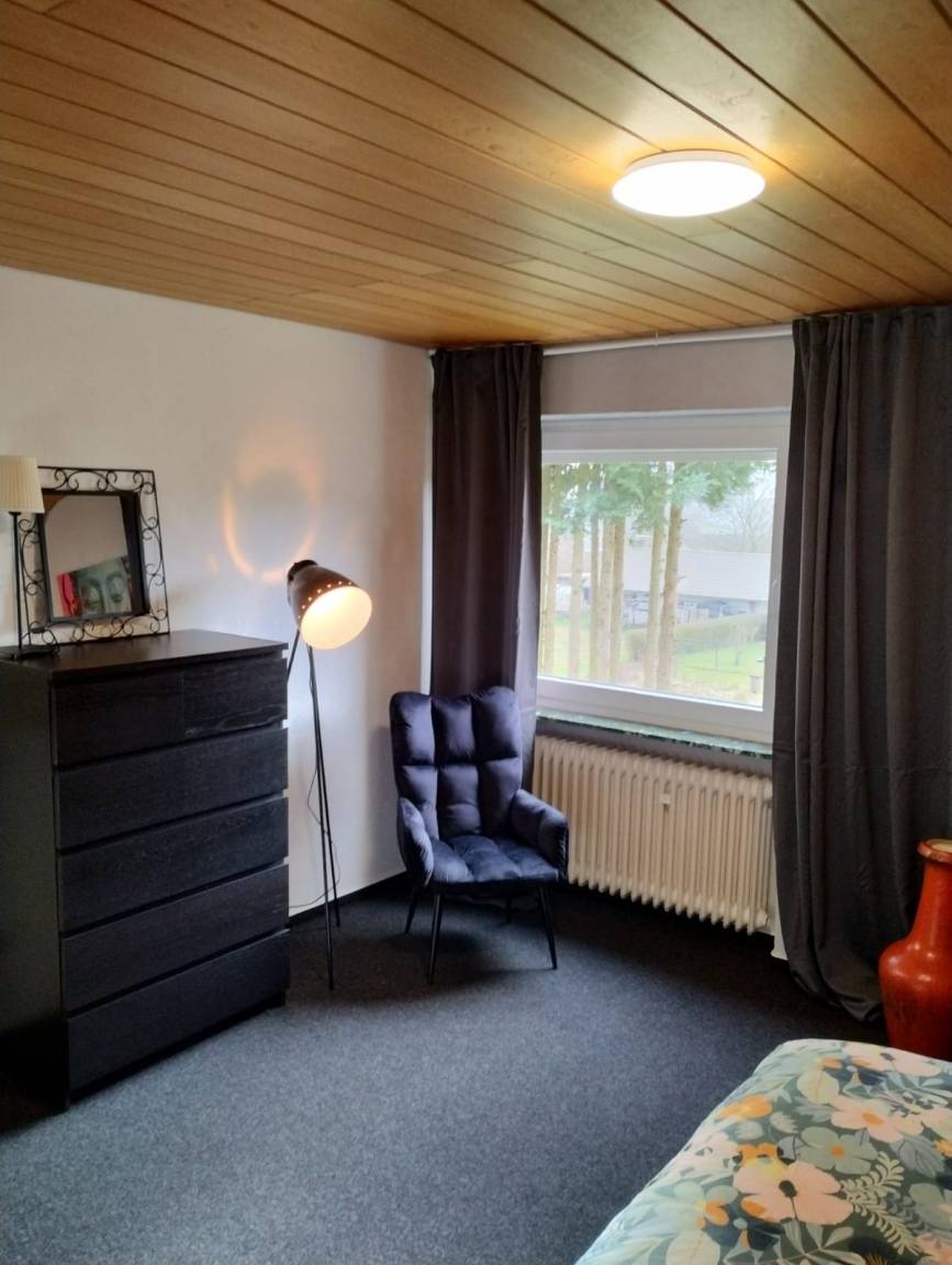 Schöne, unabhängige Wohnung in einem Einfamilienhaus. Eine Mischung aus deutscher Eifeltradition und Rotterdam/Brabanter Gastfreundschaft, individuell eingerichtet und komplett ausgestattet. Sie verfügen über Wohnzimmer, Esszimmer, Küche, Flur, Bad und zwei Schlafzimmer mit Platz für vier Erwachsene. Schöne Aussicht auf der einen Seite Richtung Wiesbaum und auf der anderen Seite Richtung Lissendorf. Parkmöglichkeiten für Ihr Auto oder Motorrad. Nutzung eines Teils des großzügigen Gartens und des Blockhauses.