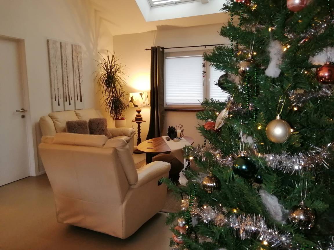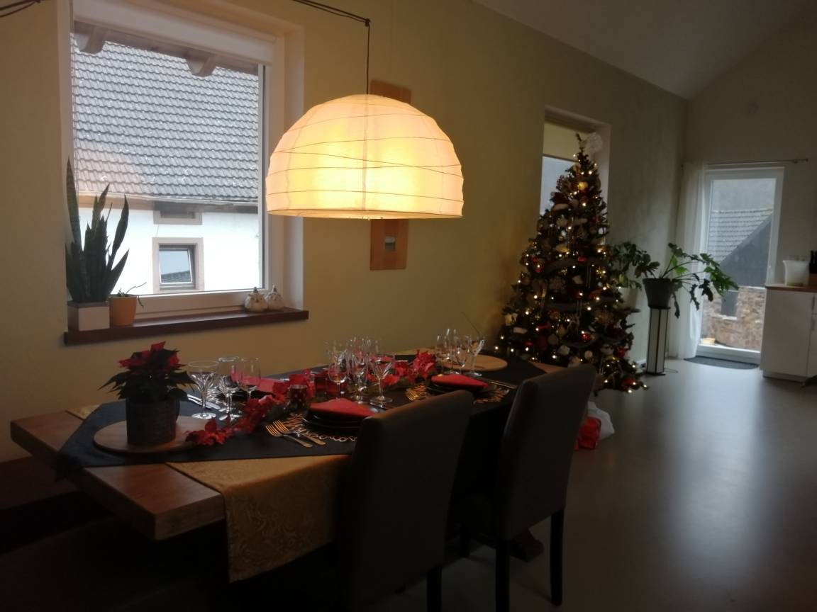 Ferienhaus Kyll ist ein gemütliches Einfamilienhaus mit privater Dachterrasse, die einen wunderschönen Panoramablick bietet und sich sehr gut für Paare mit oder ohne Kinder eignet und passend zum Thema des Jahres dekoriert ist.