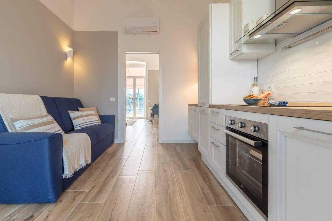 Wohnküche: gut ausgestattete Küche, Kühlschrank, Tiefkühler, Herd, Ofen, Doppel-Schlafsofa, WiFi Internet, Klimaanlage.