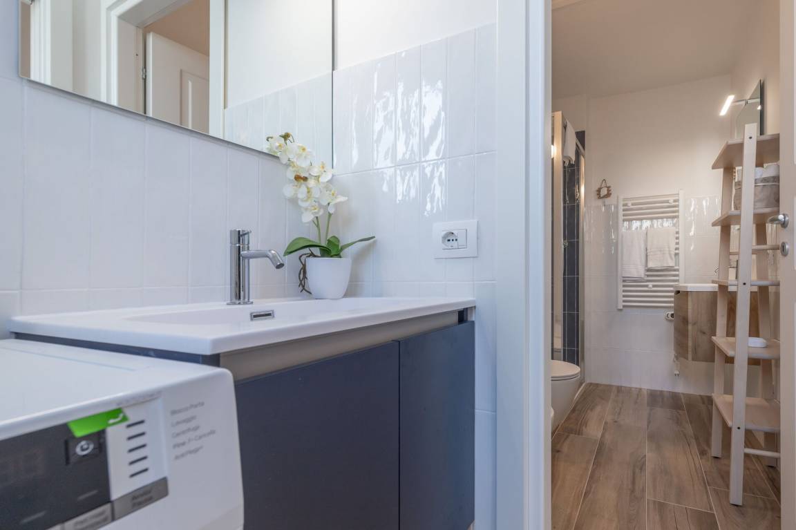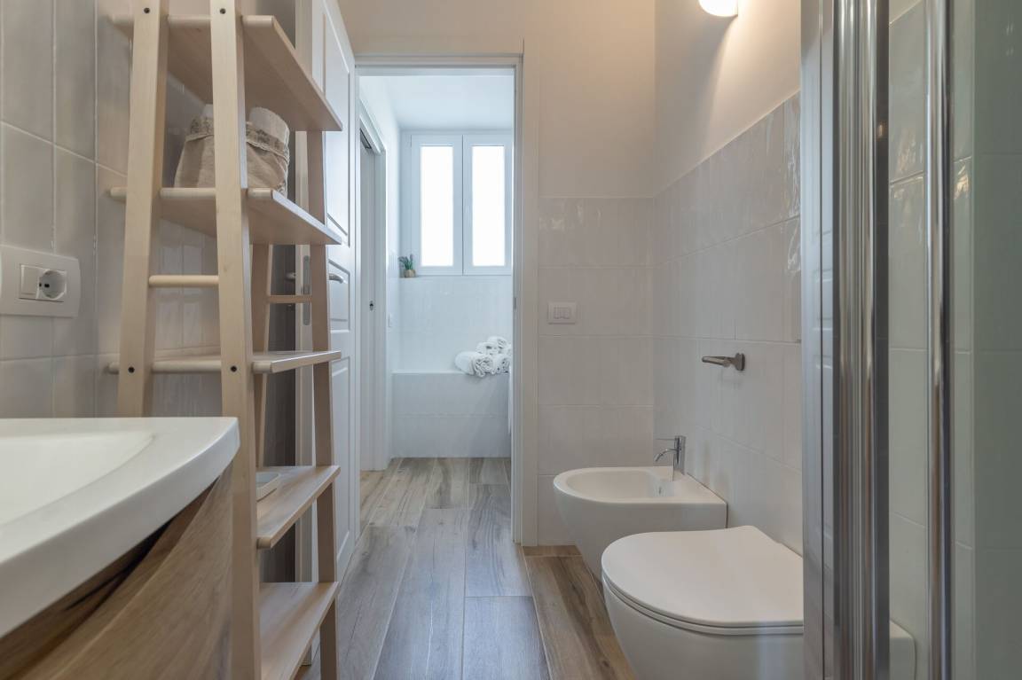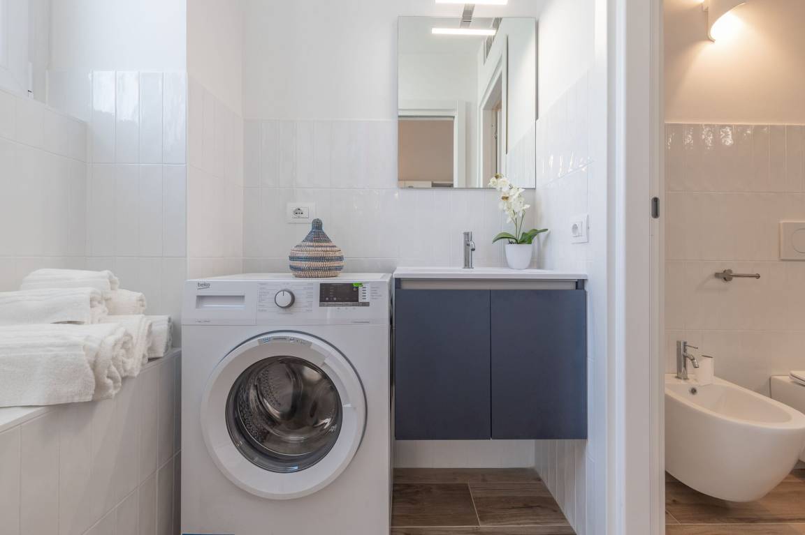 Badezimmer: Waschbecken, WC, Bidet, Dusche, Waschmaschine, WiFi Internet.
