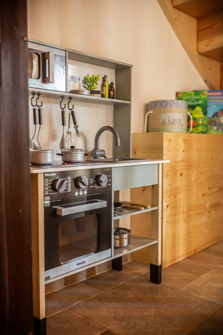 Genießen Sie Ihre Ferien in vollen Zügen, bei schönem Wetter auch gerne draußen auf der Terrasse. Die gut ausgestattete Küche besitzt unter anderem einen Kühlschrank, einen Herd zum Kochen und sogar eine Spülmaschine.