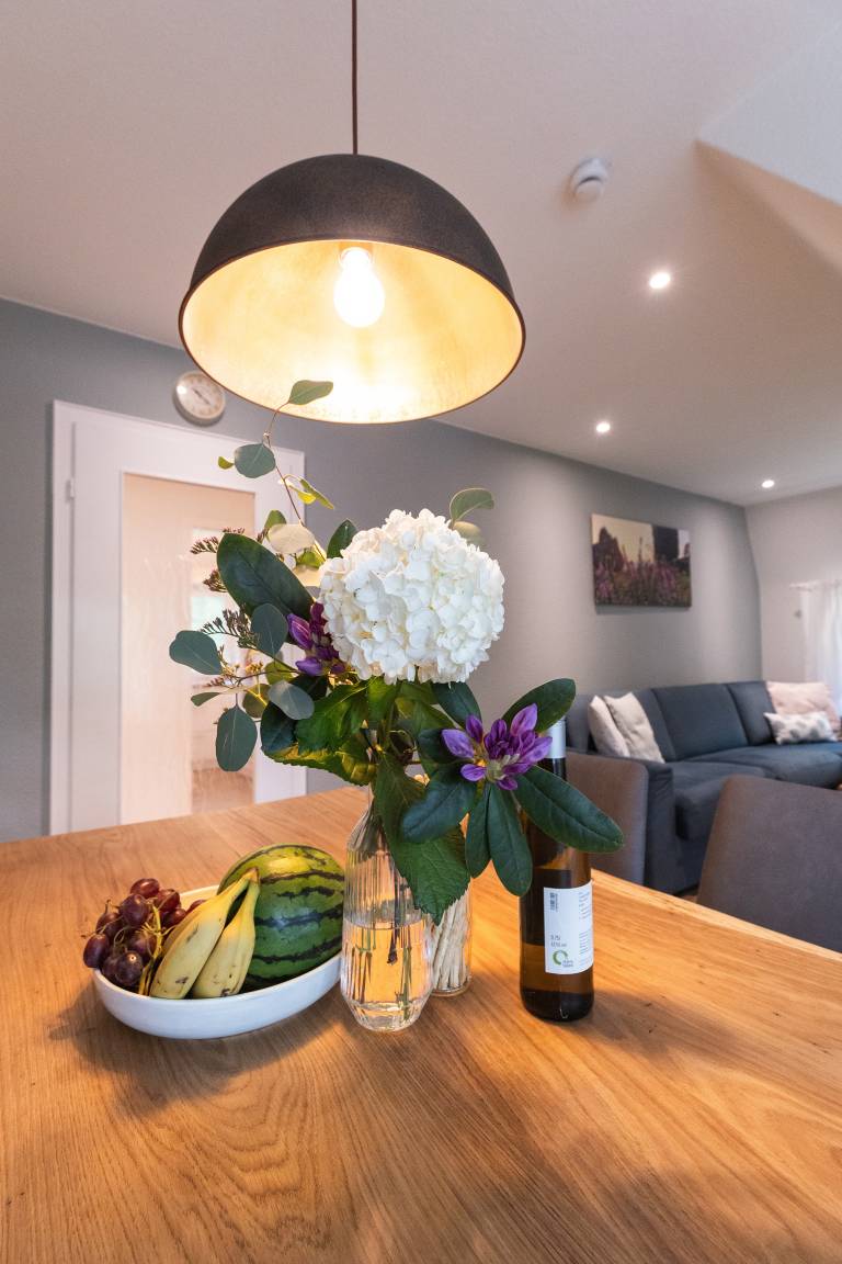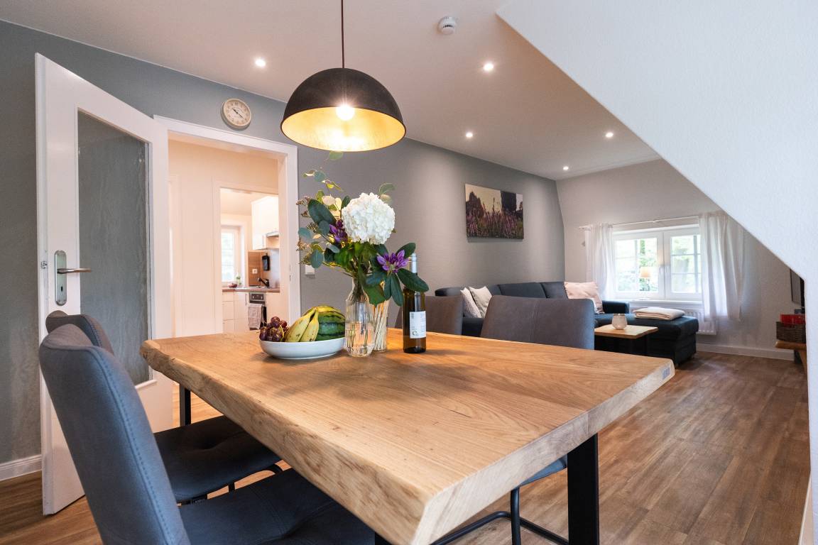 Das Fachwerkhaus war der alte Kuhstall des Hofes, der Anfang der 70er Jahre von der Hofmitte ab- und hier wiederaufgebaut wurde. Anfangs ungenutzt, sind hier seit 1974 vier Ferienwohnungen beheimatet die liebevoll im Landhausstil eingerichtet sind und regelmäßig renoviert werden. Die Wohnungen unten bieten je Platz für bis 6 Personen mit Nutzung Schlafcouch, und die gemütlichen oberen Wohnungen je bis 4Personen mit Nutzung Schlafcouch. Zur Verfügung stehen 2 Terrassen sowie ein Garten mit ausreichend Sitzmöglichkeiten. Parkplätze befinden sich direkt vor dem Haus.
