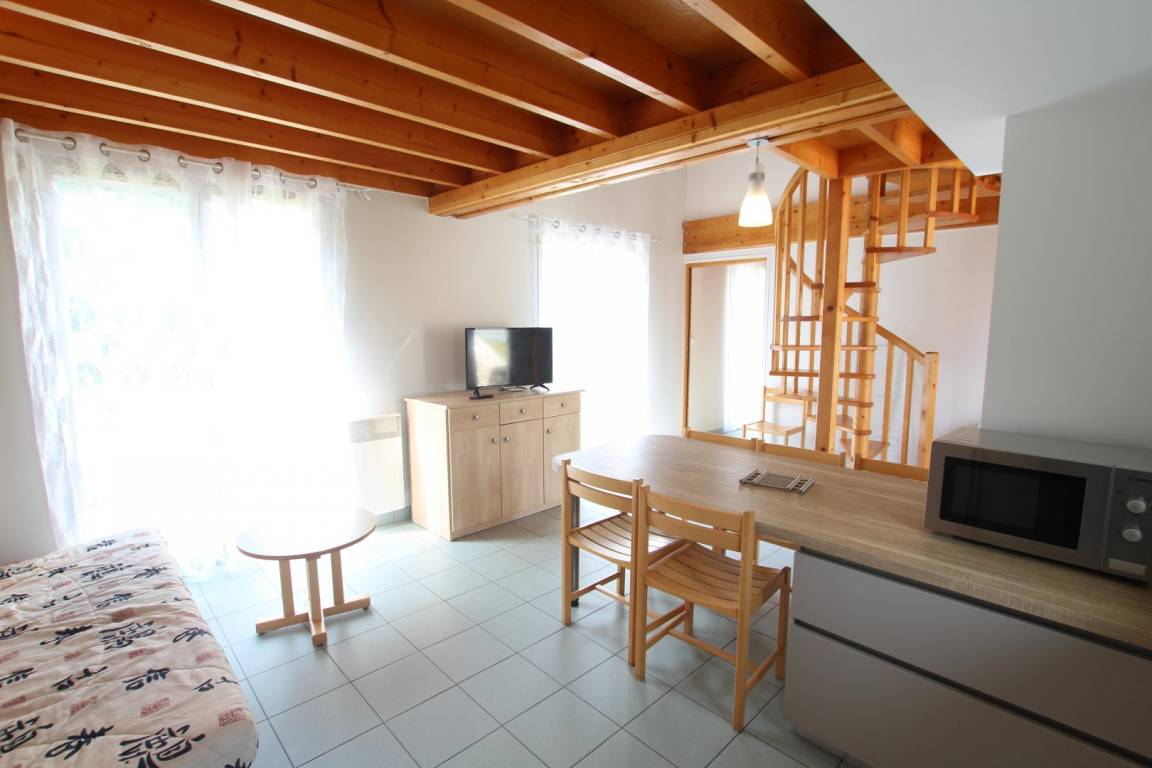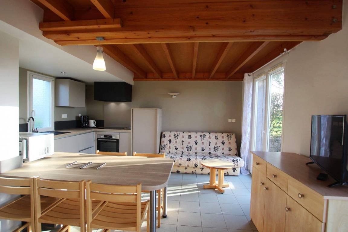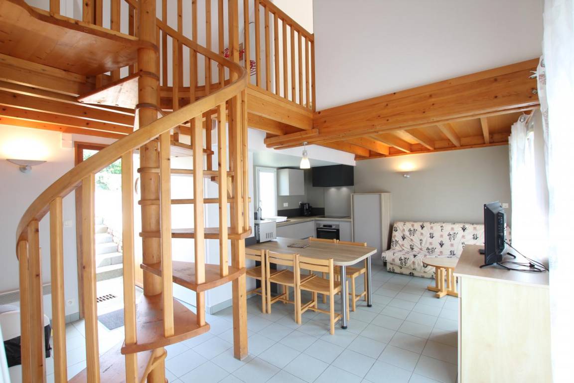 Doppelhaushälfte mit angrenzenden Ferienwohnungen. Erdgeschoss: Wohnzimmer mit Kochnische. 1 Schlafzimmer (1 Doppelbett). Duschbad (eine Stufe zum Duschen). WC. Obergeschoss: 2 Schlafzimmer (je 2 Einzelbetten). Fernseher. Geschirrspüler. Gemeinsamer Waschraum (Waschmaschinenmarken 5 € und Trocknermarken 4 €). Bettwäsche und Handtücher werden nicht gestellt. Babyausstattung auf Anfrage erhältlich. Endreinigung gegen Aufpreis. Stromkosten für die Heizung werden zum jeweils gültigen Tarif berechnet. Gemeinsam genutztes, nicht eingezäuntes Grundstück. Terrasse. Gartenmöbel. Grill. Gemeinsam genutzter Bouleplatz. Parkplatz. WLAN im Rezeptions-/Aktivitätsbereich verfügbar. Der Zugang zum Ferienhaus erfolgt über 4-5 Stufen. Eine Reinigungskaution ist bei Ankunft zu hinterlegen. Anreise nur bis 18:00 Uhr.