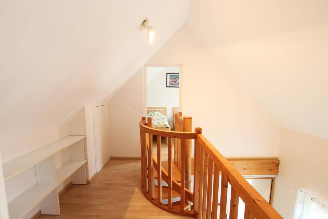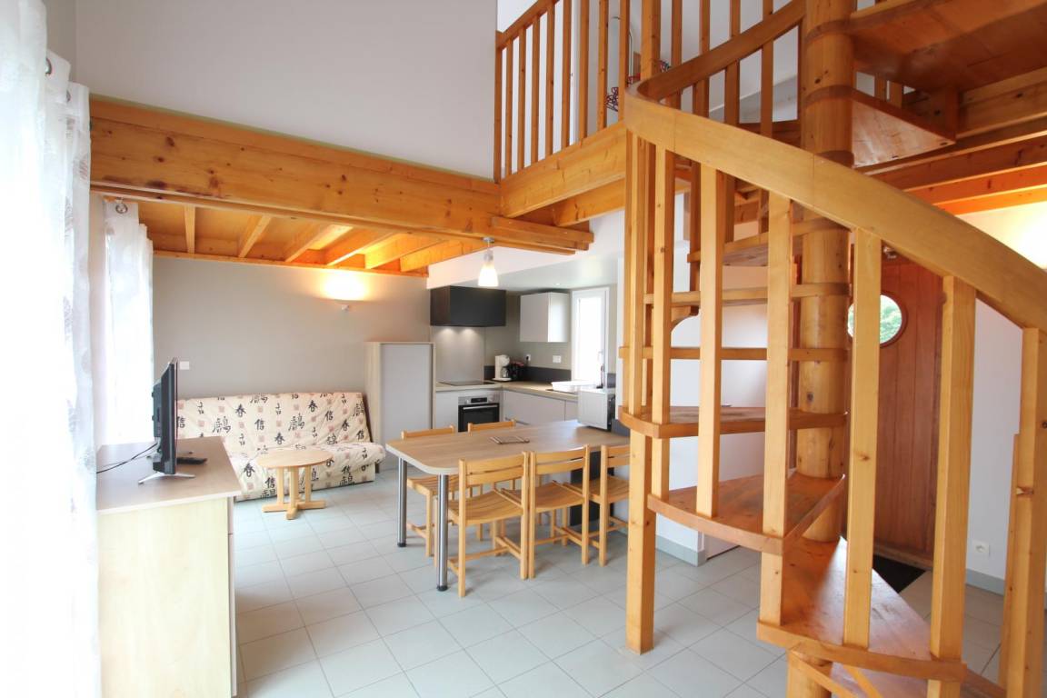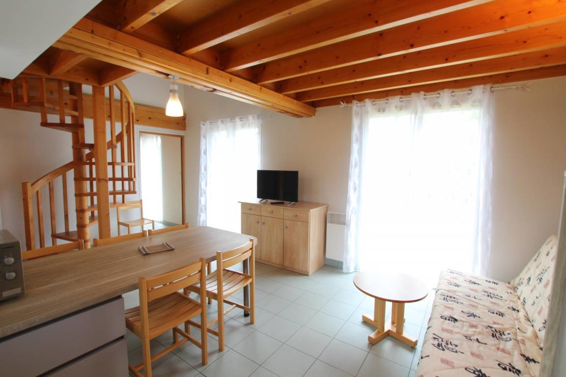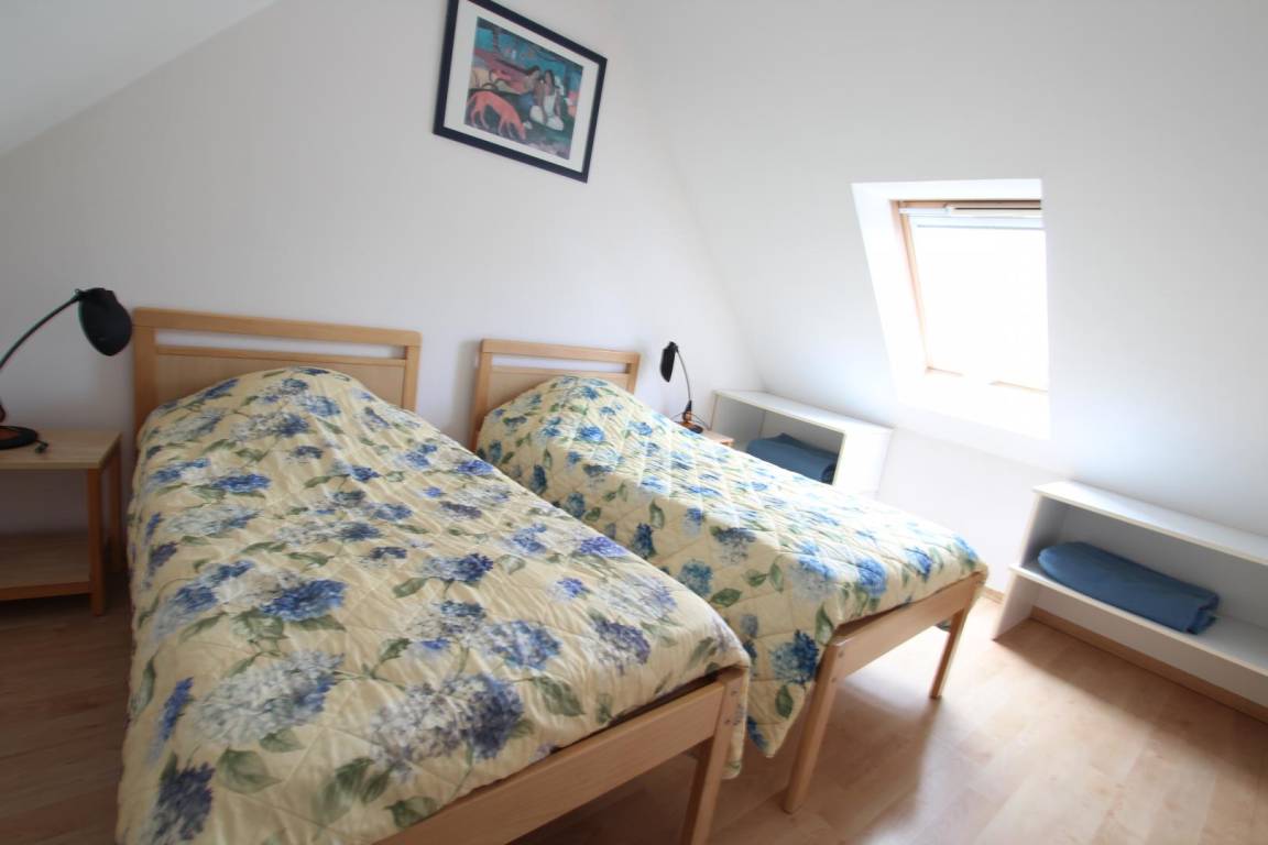 Doppelhaushälfte neben einem anderen Mietobjekt. Erdgeschoss: Wohnzimmer mit Kochnische, 1 Schlafzimmer (1 Doppelbett), Duschbad, WC. Obergeschoss: 2 Schlafzimmer (je 2 Einzelbetten), Fernseher, Geschirrspüler. Bettwäsche und Handtücher werden nicht gestellt. Gemeinsamer Waschraum (Waschmaschinenmarken 5 €, Trocknermarken 4 €). Babyausstattung auf Anfrage. Endreinigung gegen Aufpreis. Stromkosten für die Heizung werden zum jeweils gültigen Tarif berechnet. Gemeinsam genutztes, nicht eingezäuntes Grundstück. Terrasse, Gartenmöbel, Grill, gemeinsam genutzter Bouleplatz, Parkplatz. Anreise nur bis 18:00 Uhr. WLAN im Rezeptions-/Aktivitätsbereich verfügbar. Eine Reinigungskaution ist bei Ankunft zu hinterlegen. Das Ferienhaus ist über eine kurze Treppe erreichbar.