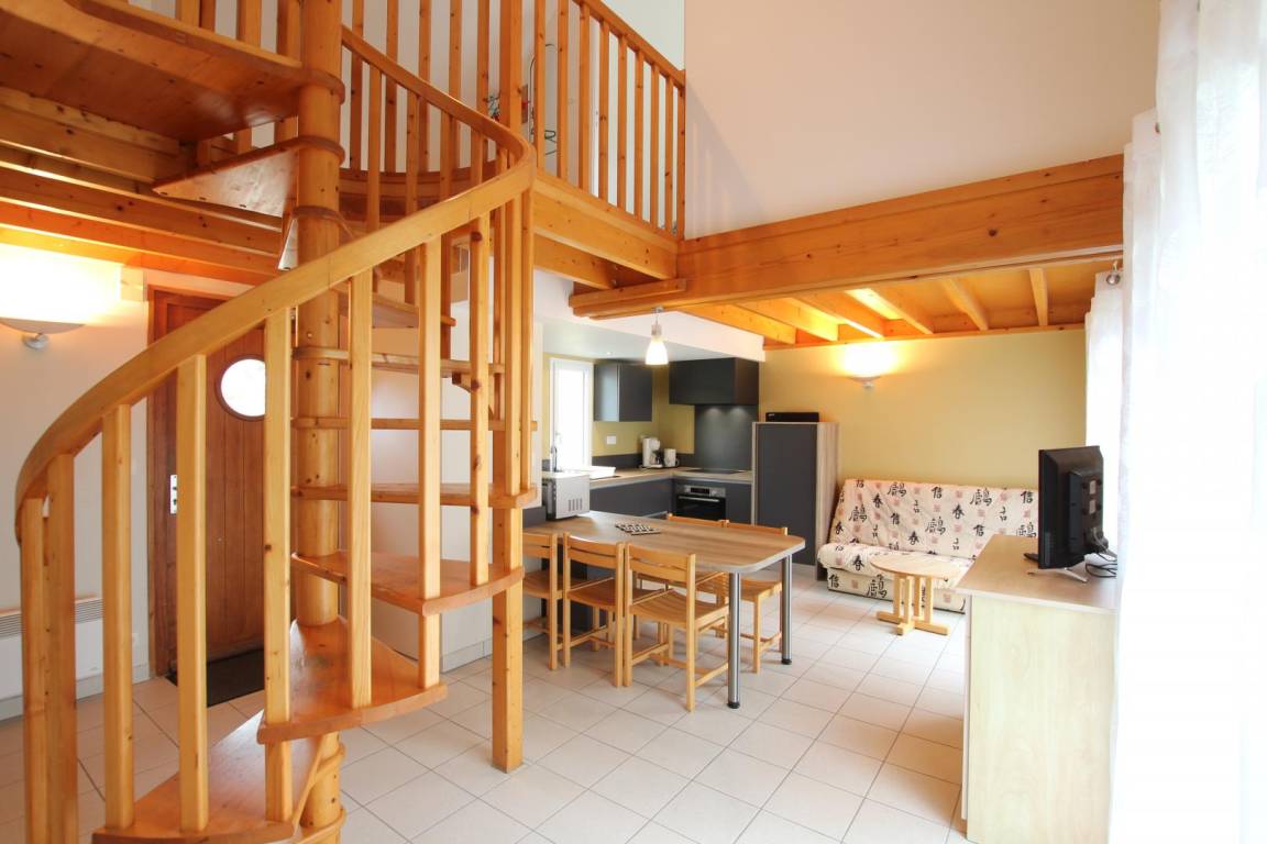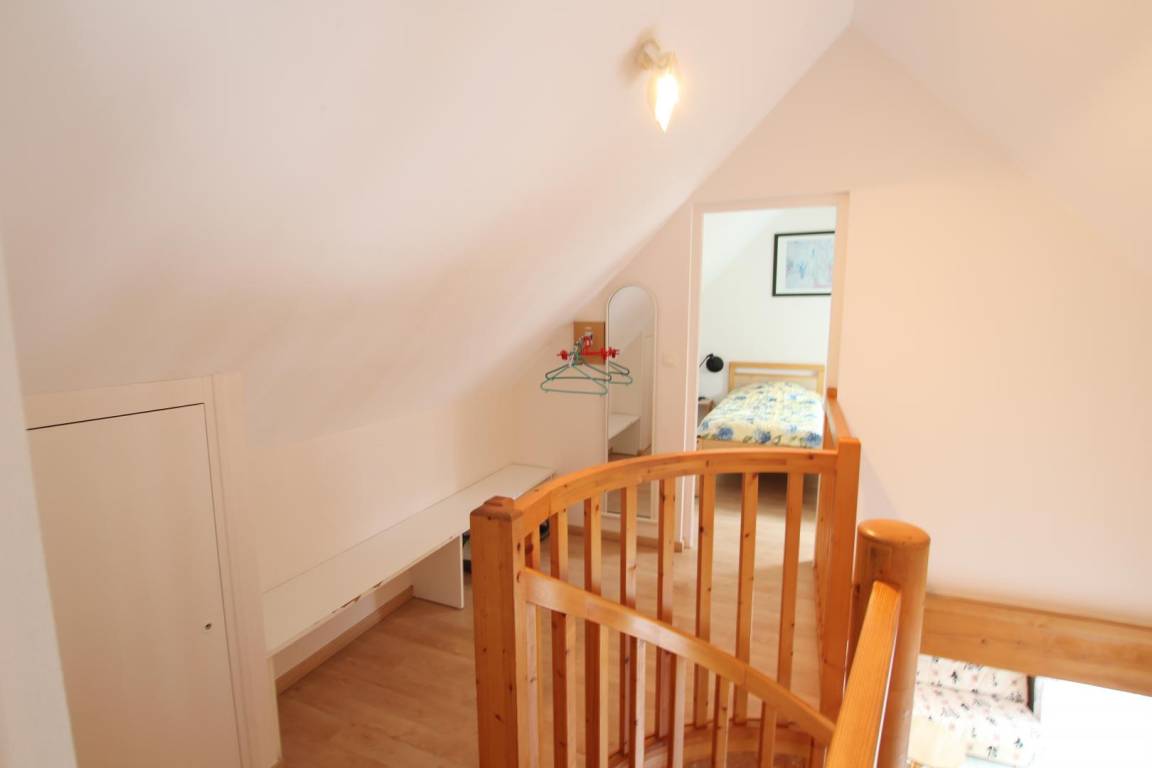 Doppelhaushälfte neben einem anderen Mietobjekt. Erdgeschoss: Wohnzimmer mit Kochnische, 1 Schlafzimmer (1 Doppelbett), Duschbad, WC. Obergeschoss: 2 Schlafzimmer (je 2 Einzelbetten), Fernseher, Geschirrspüler, gemeinschaftlicher Waschraum (Waschmaschinenmarken 5 €, Trocknermarken 4 €). Bettwäsche und Handtücher werden nicht gestellt. Babyausstattung auf Anfrage. Endreinigung gegen Aufpreis. Stromkosten für die Heizung werden zum jeweils gültigen Tarif berechnet. Gemeinsam genutztes, nicht eingezäuntes Grundstück. Terrasse, Gartenmöbel, gemeinsam genutzter Bouleplatz, Parkplatz, Grill. WLAN im Rezeptions-/Aktivitätsbereich verfügbar. Eine Reinigungskaution ist bei Ankunft zu hinterlegen. Anreise nur bis 18:00 Uhr. Zugang zum Ferienhaus über eine kleine Außentreppe (4–5 Stufen).
