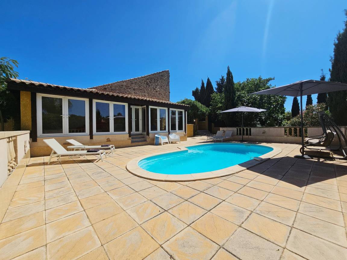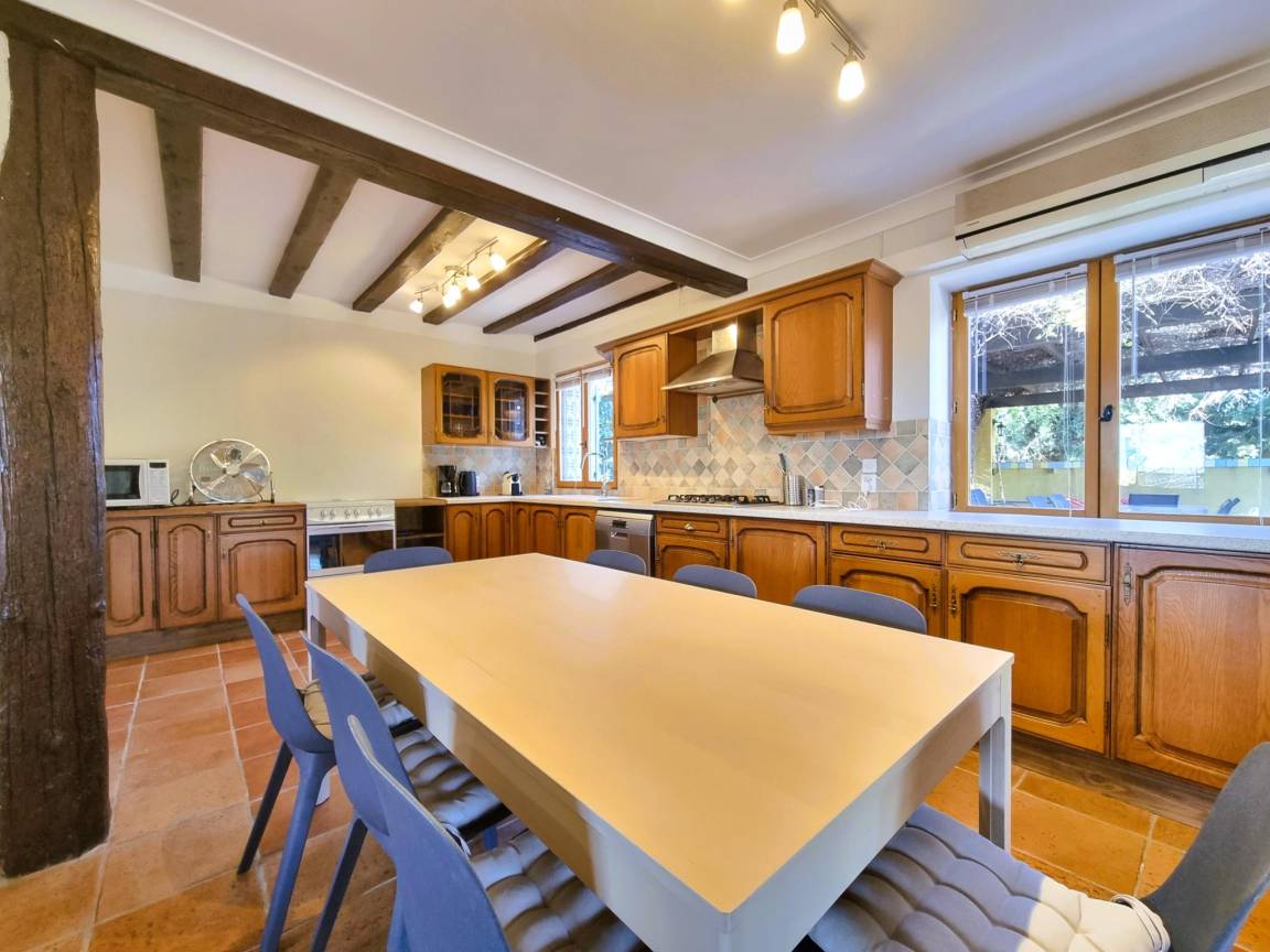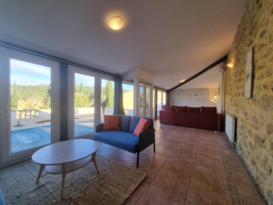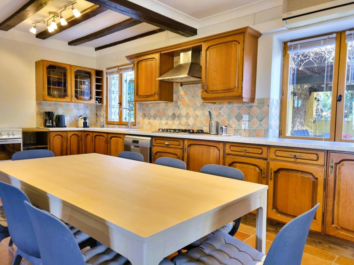 Hausbeschreibung : Diese geräumige, klimatisierte Villa für 8 Personen bietet eine idyllische Umgebung mit einer großen Sonnenterrasse und einem privaten Pool. Sie verfügt über zwei moderne Badezimmer und eine Relax-Ecke mit bequemen Sesseln, die sich perfekt zum Entspannen eignet. Das Innere ist hell und gut eingerichtet, mit offenen Räumen, einer voll ausgestatteten Küche und eleganten Schlafzimmern. Der grüne Garten und die Terrasse bieten einen herrlichen Ausblick, ideal für gesellige Stunden