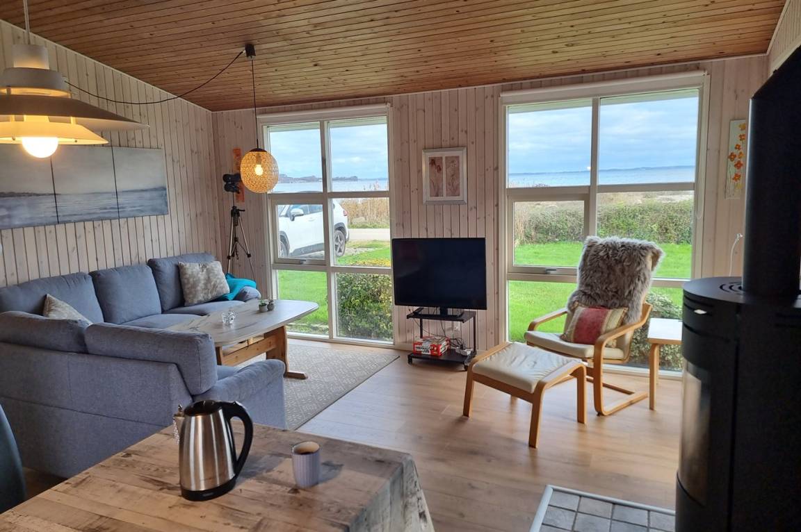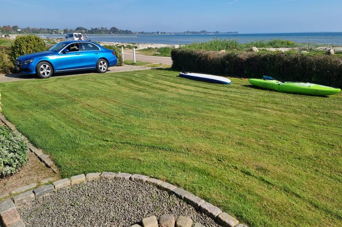 DraußenDie Ferienunterkunft liegt auf einem 580 m² großen Gartengrundstück. Die Entfernung zum Meer beträgt 15 m. Es gibt einen Badesteg in der Nähe. Die nächste Einkaufsmöglichkeit liegt 4500 m entfernt. Es steht ein offenes Terrassenareal zur Verfügung. Außerdem gibt es überdachte Terrasse. Geräteraum. Die Entfernung zu einem Spielplatz beträgt 300 m.Lagerfeuerstelle. Es steht ein Grill zur Verfügung. Es steht ein Carport zur Verfügung. Parkplatz auf dem Grundstück.