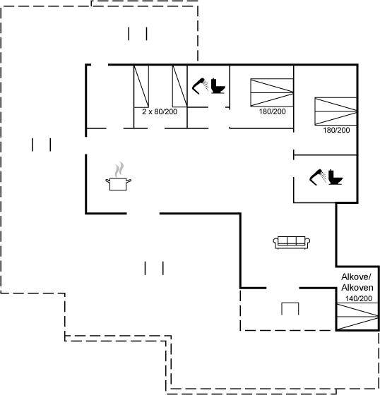 SchlafverhältnisseDie Schlafplätze verteilen sich auf 3 Schlafräume. 4 Schlafplätze in Doppelbetten. 2 Schlafplätze in Einzelbetten.2 Schlafplätze im Alkoven. 2 von diesen Schlafplätzen befinden sich im Wohnzimmer. Ferner steht ein Kinderbett zur Verfügung.