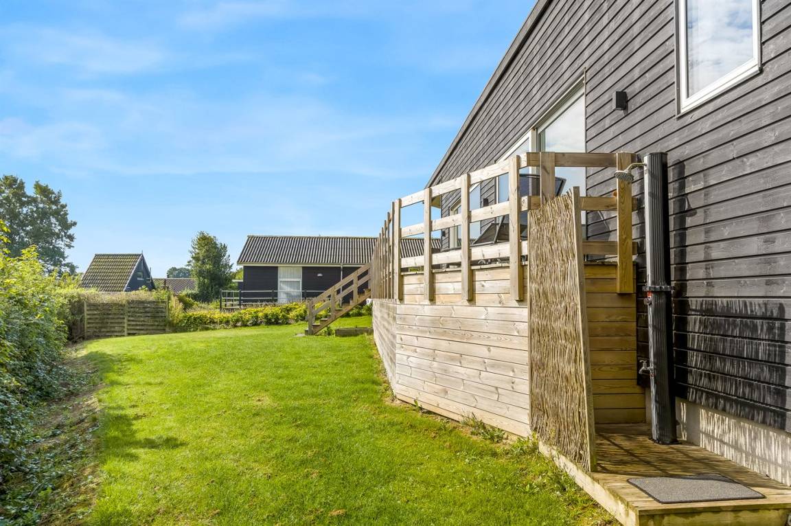 DraußenDie Ferienunterkunft liegt auf einem 750 m² großen Gartengrundstück. Die Entfernung zum Meer beträgt 150 m. Es gibt einen Badesteg in der Nähe. Die nächste Einkaufsmöglichkeit liegt 4700 m entfernt. Es steht ein offenes Terrassenareal zur Verfügung. Außerdem gibt es überdachte Terrasse. Die Entfernung zu einem Spielplatz beträgt 500 m. Außendusche. Es steht ein Grill zur Verfügung. Es ist ein Ladestecker für Elektroautos installiert. Ladestecker Typ 2. Mit einer Ladeleistung von 11 kW. Parkplatz auf dem Grundstück.