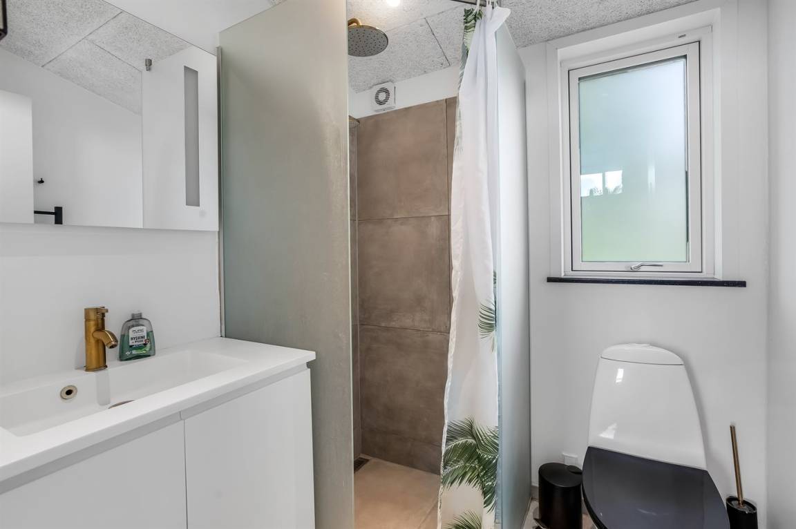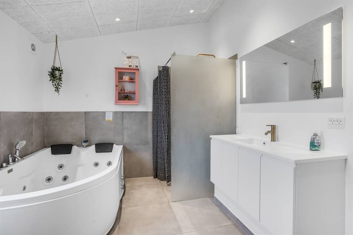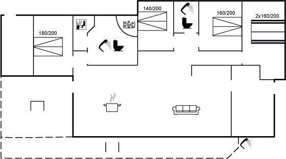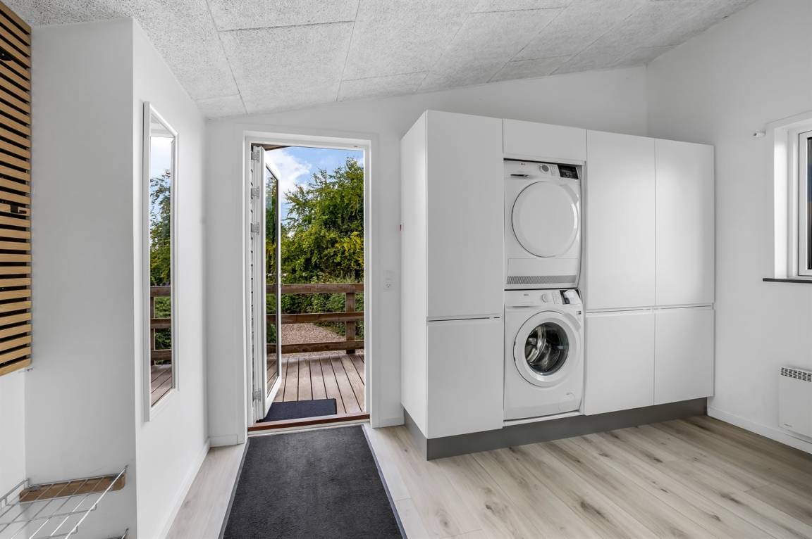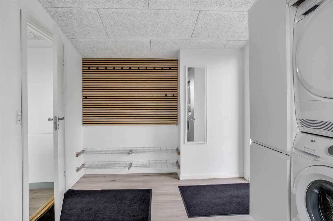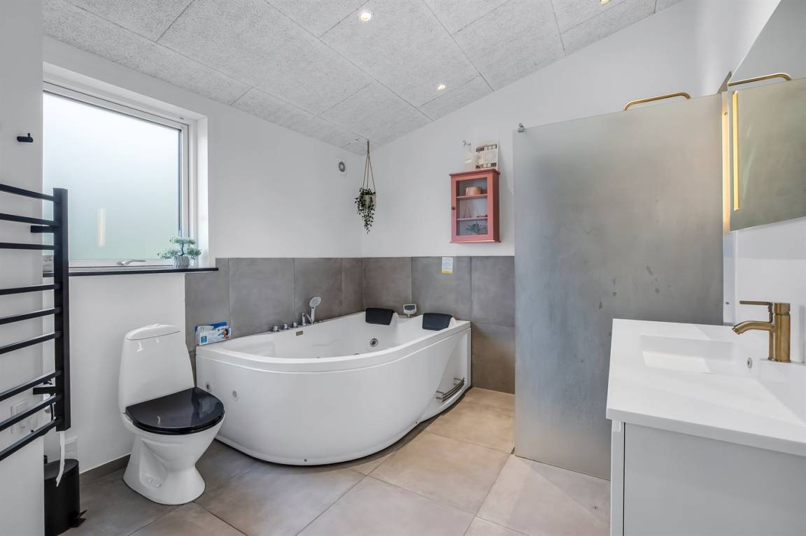 Das Ferienhaus verfügt über vier Schlafzimmer, die alle in einem leicht versetzten Bereich zum Wohnraum liegen, was eine praktische Aufteilung von Wohn- und Schlafbereichen ermöglicht. Eines der Zimmer bietet Platz für vier Personen, und als besonderes Detail gibt es ein gemütliches offenes Obergeschoss, der vom versetzten Geschoss aus zugänglich ist. Hier können die Kinder ihre eigene kleine Höhle haben, oder du kannst das offene Obergeschoss als zusätzliche Schlafgelegenheit nutzen. Nach einem Tag am kinderfreundlichen Strand von Binderup, der nur wenige Schritte entfernt liegt, kannst du dich im hauseigenen Whirlpool für zwei Personen oder in der Sauna verwöhnen – hier steht die Entspannung im Mittelpunkt.