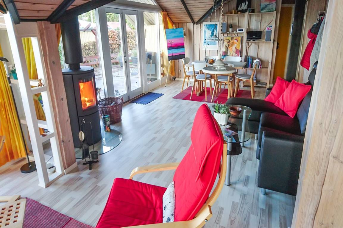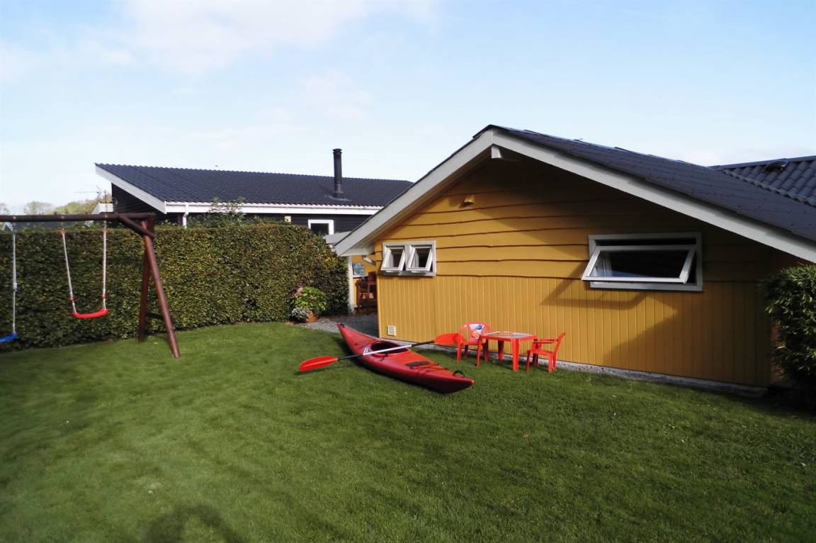 DraußenDie Ferienunterkunft liegt auf einem 700 m² großen Gartengrundstück. Das Grundstück ist eingezäunt. Die Entfernung zum Meer beträgt 100 m. Es gibt einen Badesteg in der Nähe und es steht ein Kajak zur Verfügung. Die nächste Einkaufsmöglichkeit liegt 100 m entfernt. Es steht ein 54 m² Terrassenareal zur Verfügung. Außerdem gibt es 14 m² überdachte Terrasse. Geräteraum. Schaukel. Sandkasten. Es ist ein Ladestecker für Elektroautos installiert. Ladestecker Typ 2. Mit einer Ladeleistung von 11 kW. Parkplatz auf dem Grundstück.
