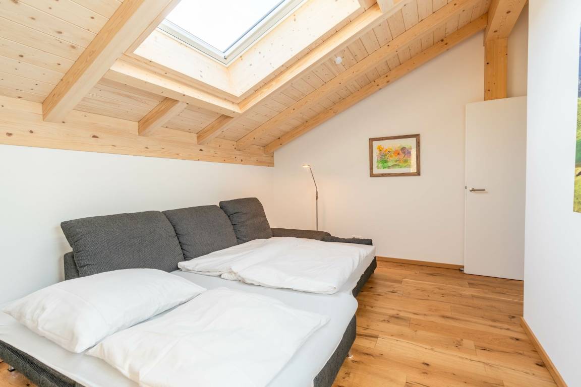Der Wohnbereich verfügt ein Sofa mit Longchair und einen Flachbildfernseher. Von hier aus betreten Sie den zweiten Balkon, auf dem ausreichend Platz ist für gemütliches Beisammensein am Balkontisch oder auch einfach um etwas Sonne einzufangen und die Bergluft bei einem guten Buch zu genießen.