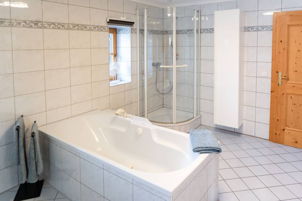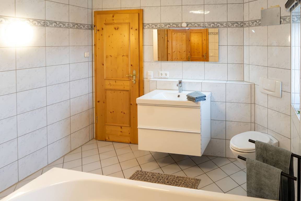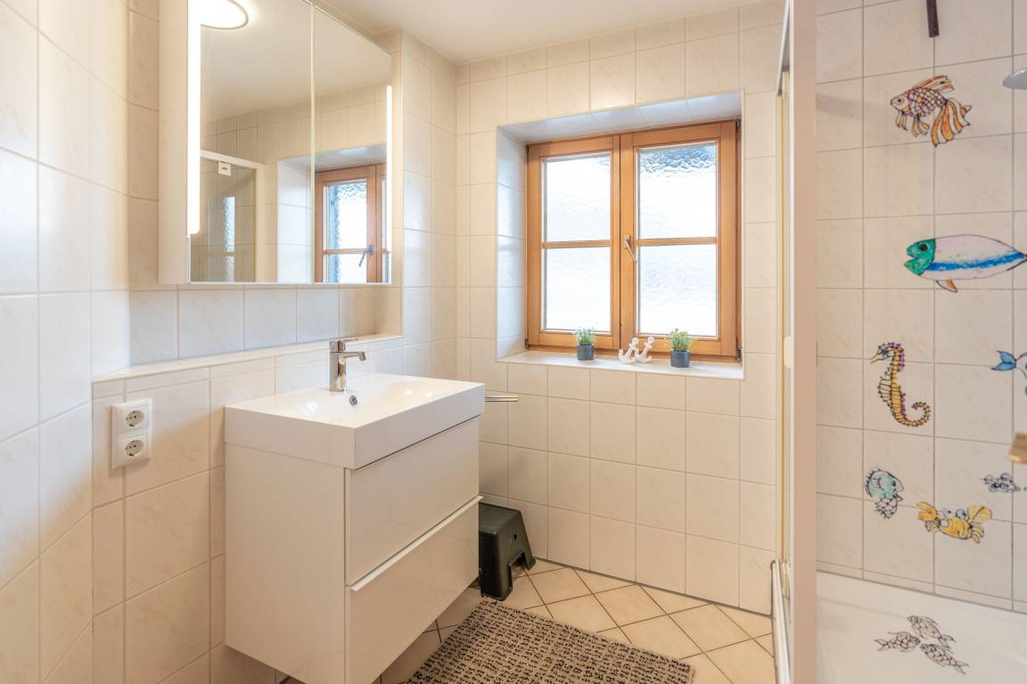 Die moderne Küche hat alles zu bieten, was Sie für Ihren Ferienaufenthalt benötigen. Gleich nebenan befindet sich der Hauswirtschaftsraum mit Waschmaschine und Trockner. Die Wohnung verfügt entsprechend über zwei Badezimmer mit Dusche und WC, eines mit zusätzlicher großer Badewanne. Die komplette Wohnung ist mit Parkettboden und Fußbodenheizung ausgestattet.