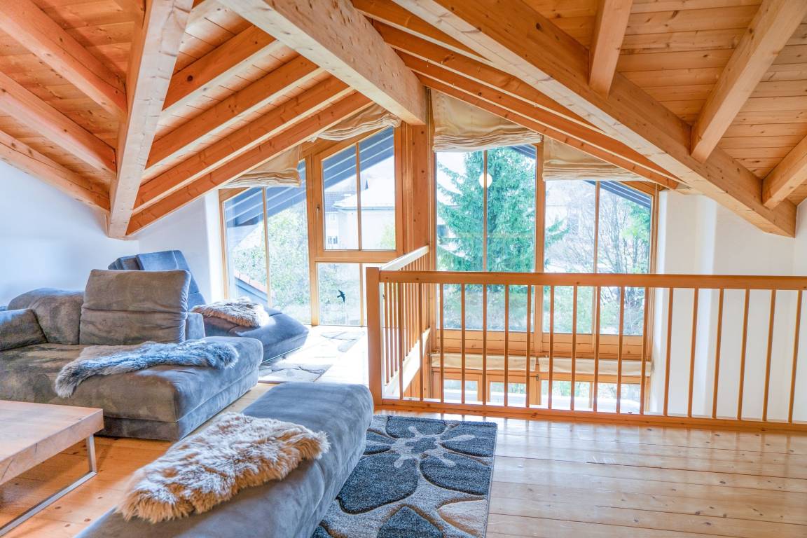 Die Wohnung verfügt über ein geräumiges und helles Wohn-/Esszimmer, von welchem Sie einen direkten Zugang auf den großen Balkon haben. Genießen Sie von dort die herrliche Aussicht in die Allgäuer Alpen, die Ihnen diese wunderschöne Ferienwohnung ermöglicht. Auf der Galerie befindet sich ein weiteres Wohnzimmer mit Kuschelsofa und großem Smart-TV.