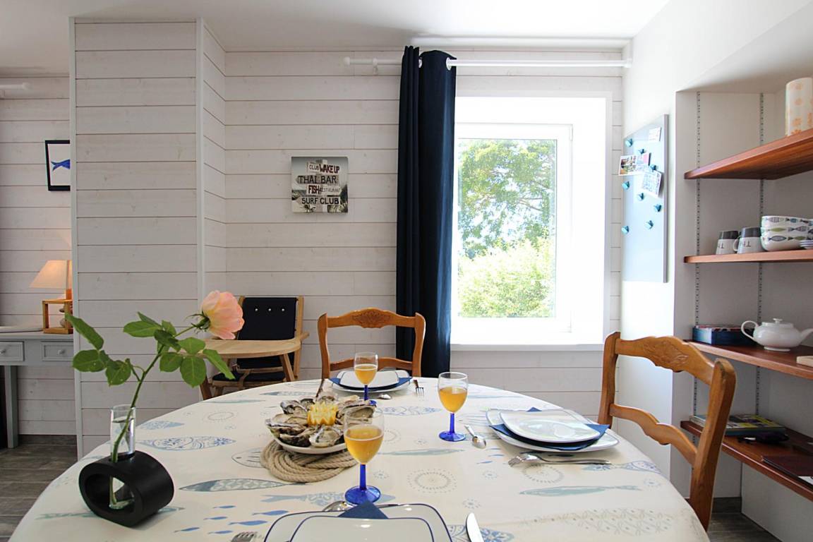 „Dans un cadre magnifique, dans une jolie maison moderne et confortable, au calme et pas très loin des commerces et de la mer.“