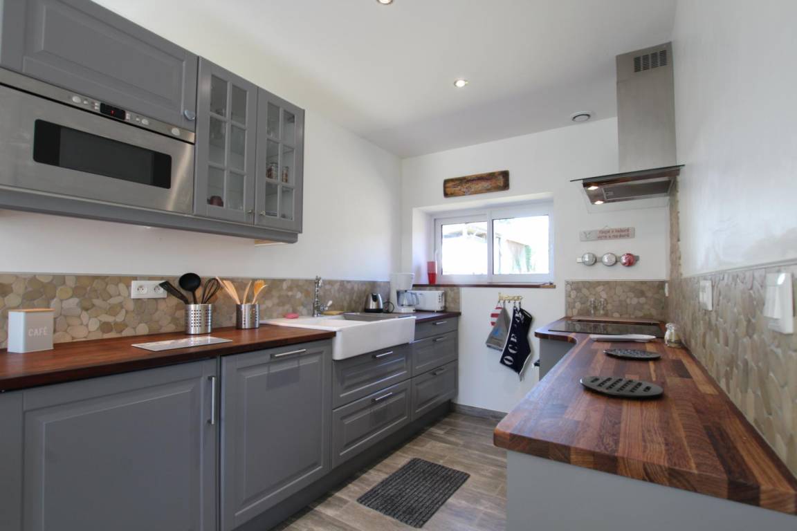 „Geschmackvoll eingerichtetes Ferienhaus, mit allem, was man für einen erholsamen Urlaub braucht. In ruhiger Lage auf schönem Grundstück, mit privatem Garten. Ca. 7-10 Minuten mit dem Auto von den schönen Sandstränden entfernt, ebenso 10 Minuten zum nächsten Supermarkt oder Bäcker. Sehr nette Vermieter! Wir waren schon zum 2. Mal da. Vielen Dank für die nette Betreuung durch Francois (und Anne).“