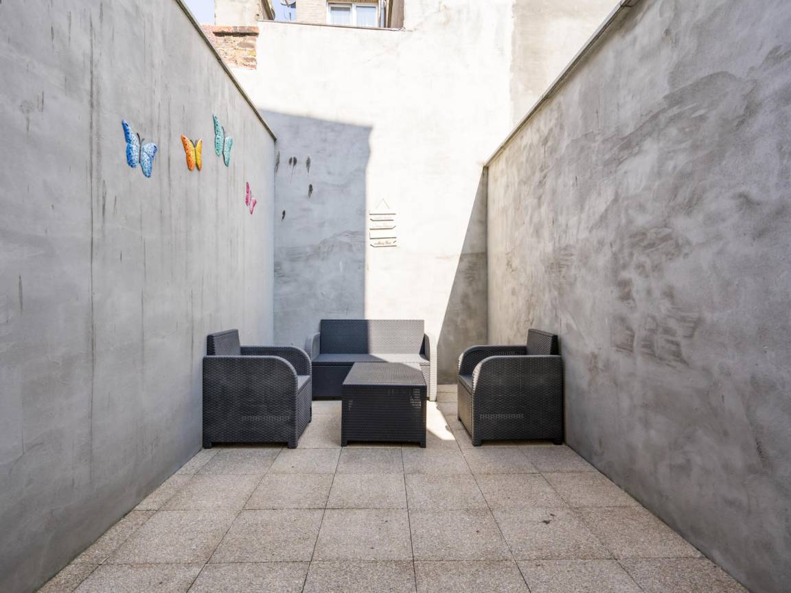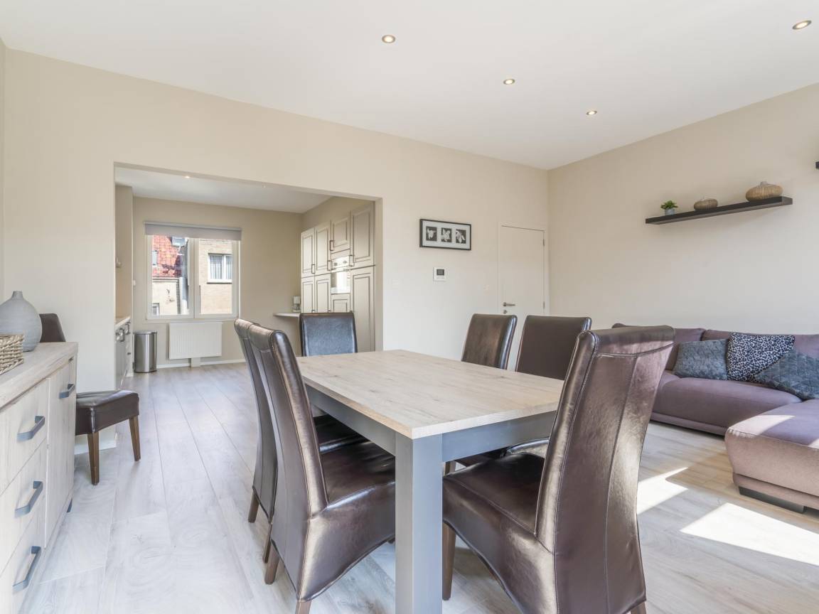 Hausbeschreibung : Schöner Duplex im 2. Stock (kein Aufzug) im Zentrum von Blankenberge. Helles Wohnzimmer mit großer, voll ausgestatteter Küche. Auf der Duplexebene zwei große Schlafzimmer: eines mit Doppelbett und eines mit Etagenbett und zusätzlichem Einzelbett. Modernes Bad mit ebenerdiger Dusche und große Terrasse mit Lounge.
