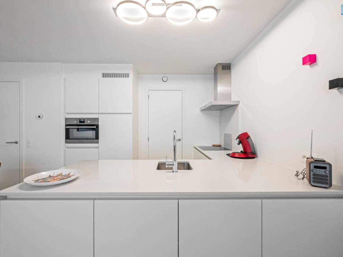 Hausbeschreibung : Wunderschönes Neubauapartment mit 2 komfortablen Schlafzimmern, geräumigem Wohnbereich und voll ausgestatteter moderner Küche. Badezimmer mit luxuriöser Walk-in-Dusche. Großes Terrasschen an der Vorderseite, ideal für Frühstück in der Sonne oder ein Getränk am Abend. Nur wenige Minuten zu Fuß vom Strand, Geschäften und Restaurants. Perfekt für einen erholsamen Urlaub.