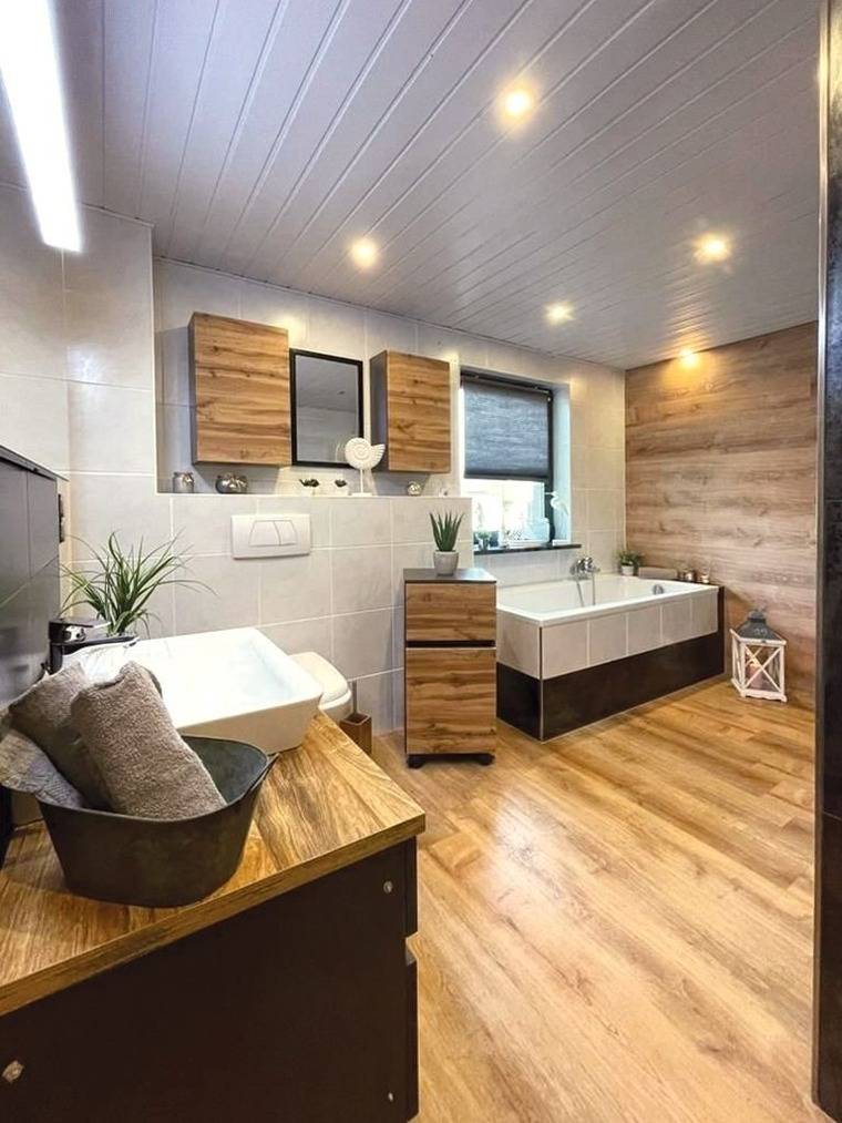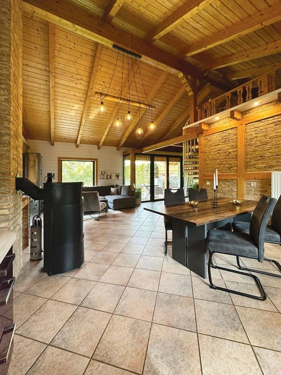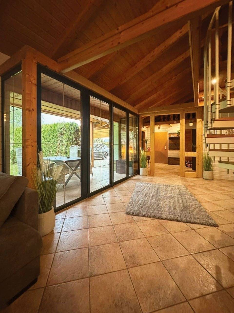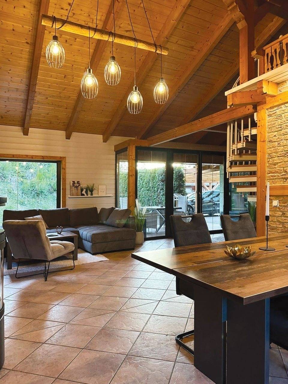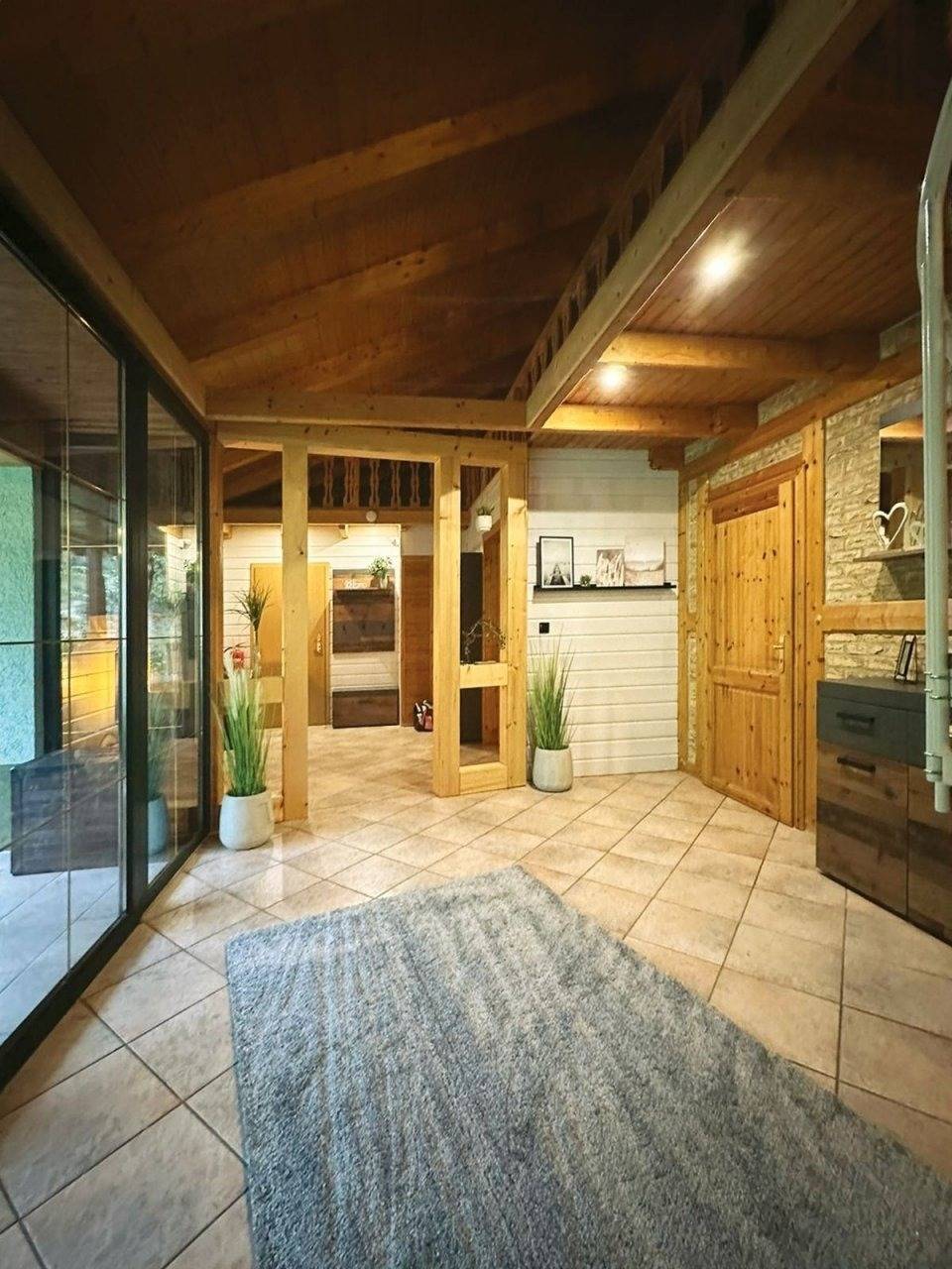 Das Haus verfügt über 2 Schlafzimmer, eines davon (1,80 m x 2,00 m) , dass andere ( 1,60 m x 2,00 m ). Des weiteren befindet sich eine Küche mit Essbereich und Wohnraum ( Kamin) zusammen. Im oberen Bereich befindet sich auch noch eine Galerie die aber zu Wohnzwecken, leider nicht geeignet ist. Zu dem Bad das ca. 15 m² hat, gehören eine ebenerdige Dusche und eine kleine Badewanne mit Toilette und Waschbecken. Im Aussenbereich befinden sich eine Terrasse mit Blick auf dem Hang , ein großzügiges Carport mit zwei Stellplätzen.