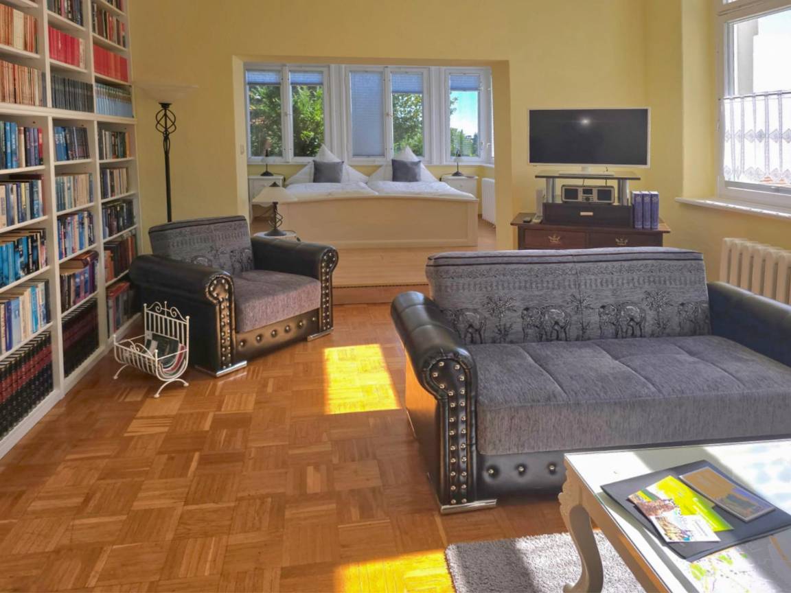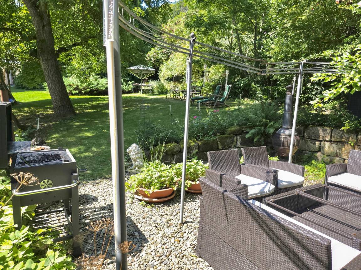 Hausbeschreibung : Diese stilvolle Ferienwohnung liegt im Erdgeschoss einer charmanten Villa am Rande von Blankenburg im Harz. Über wenige Stufen erreichen Sie den separaten Eingang. Hohe, helle Räume und der gemütliche Holzofen sorgen für Wohlfühlatmosphäre. Die Schlafnische im Wintergarten lädt zum Entspannen ein. Im großen Garten mit Liegen und Sitzplätzen genießen Sie entspannte Stunden im Grünen – perfekt für eine Auszeit in ruhiger Umgebung