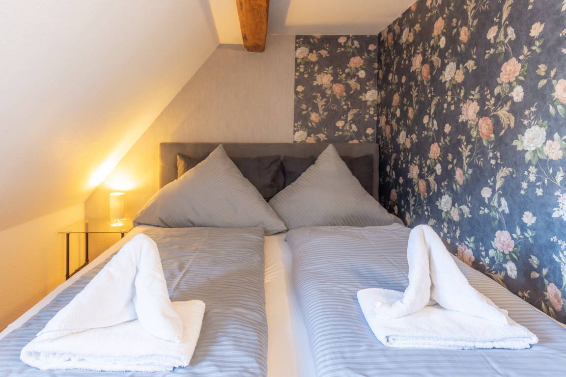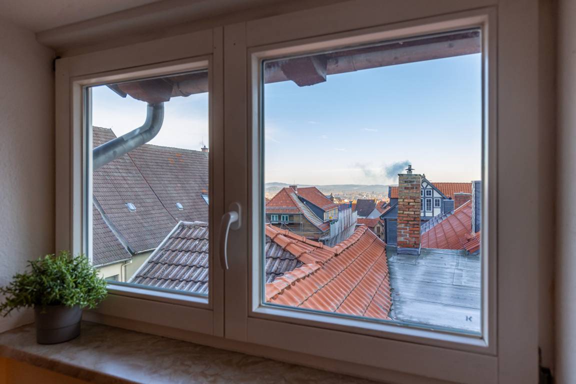 Unsere Ferienwohnung "Am neuen Thore" ist modern ausgestattet und lädt Sie zu einem unvergesslichen Harzurlaub in der Blütenstadt im Harz ein. Genießen Sie die Nächte in unserem Boxspringbett, die moderne offene Küche läßt keine Wünsche offen! Relaxen Sie auf unserem Ecksofa oder unserem Innenhof! Unsere Ferienwohnung "Am neuen Thore III" ist modern eingerichtet und wurde 2021 frisch renoviert. Im Wohn- und Kochbereich wartet eine kleine Essecke sowie eine Eckwohnlandschaft auf Sie - diese kann bei Bedarf auch in eine zweite Schlafmöglichkeit mit einer Breite von ca. 1,40m verwandelt werden. Von hier aus haben Sie den idealen Blick auf unseren Flachbild TV. Die modern eingerichtete Küche verfügt über einen Herd mit Ceranfeld, Backofen, Spülmaschine, Kühlschrank mit Tiefkühlfach, Kaffeemaschine, Wasserkocher und Toaster. Im Bad finden Sie Badewanne, Waschbecken und WC. Bei gutem Wetter wartet zudem unser freundlicher Innenhof auf Sie. Die Ferienwohnung verfügt über kostenloses W-Lan! Achtung: Sie wohnen in einem Denkmal! Die Wohnung weist daher nur eine eingeschränkte Deckenhöhe auf. Wir empfehlen Personen, die größer als 1,75m sind, diese Wohnung nicht anzumieten. Der Zugang erfolgt über eine Treppe, die steiler ist, als heutige Treppen! Menschen, die mit steileren Treppen Schwierigkeiten haben, sollten die Wohnung ebenfalls nicht buchen!