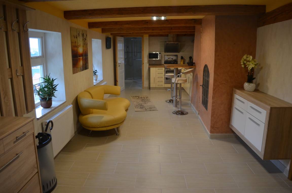 Die Unterkunft ist bis zu 5 Personen ausgeschrieben, d.h. es sind 5 normale Betten und ein Kinderbett vorhanden. Die Ferienwohnung liegt in der 1. Etage, die untere Etage wird durch uns genutzt.