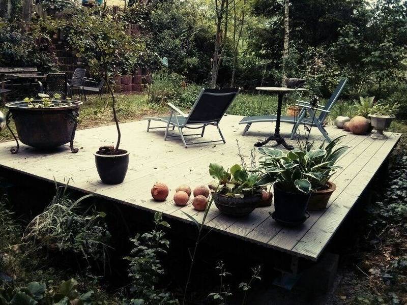 Der Garten ist eingezäunt und kann direkt oben auf einen Feldweg verlassen werden.