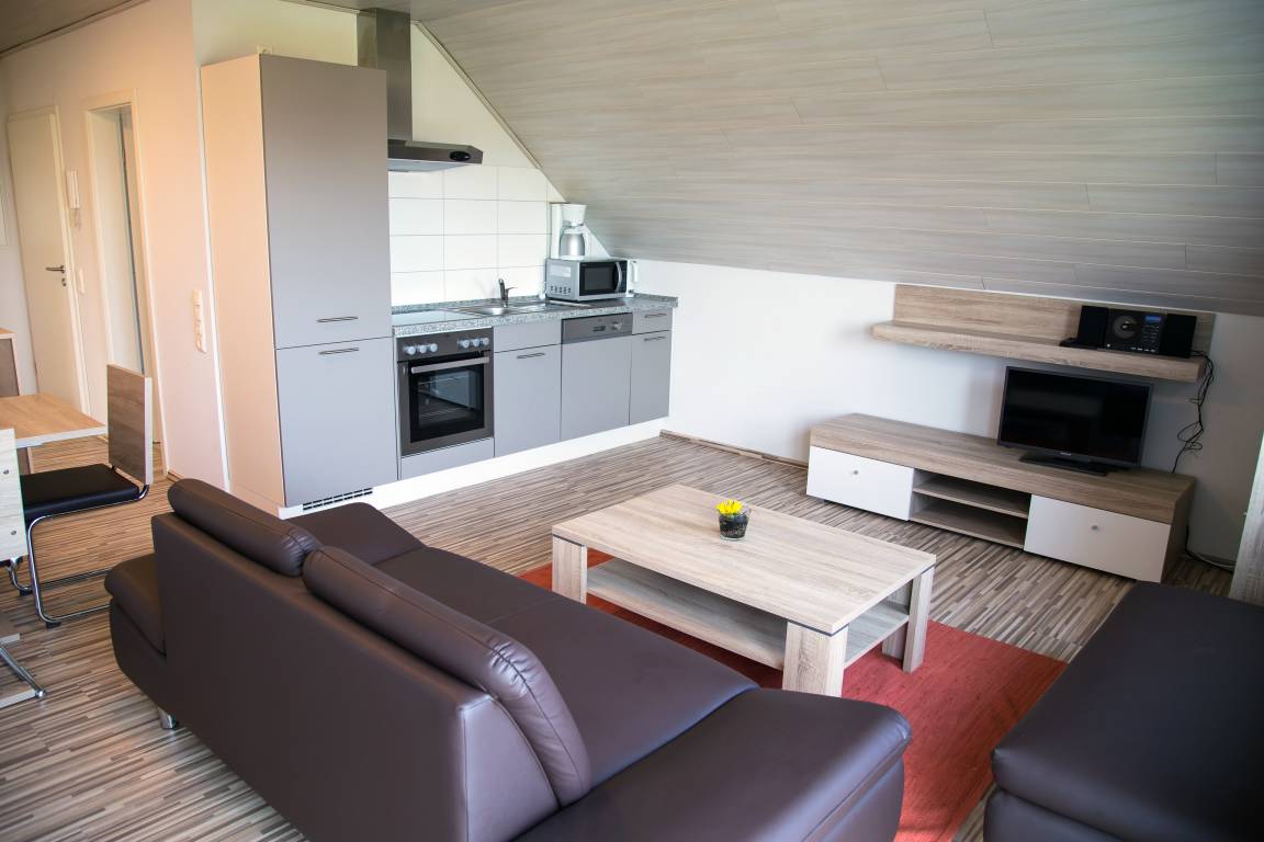 In dem neuen Gebäude von 2014 befinden sich großzügige, modern und zeitlos eingerichtete Wohnungen mit vollwertigen Küchen im Wohn- und Essbereich. Die Schlafzimmern haben Einzelbetten die verbindbar sind. Alle Wohnungen sind mit einem Bad ausgestattet mit bodentiefer Dusche, WC und Waschgelegenheit. Jede Wohnung verfügt über eigenen Balkon mit Sitzgelegenheit.