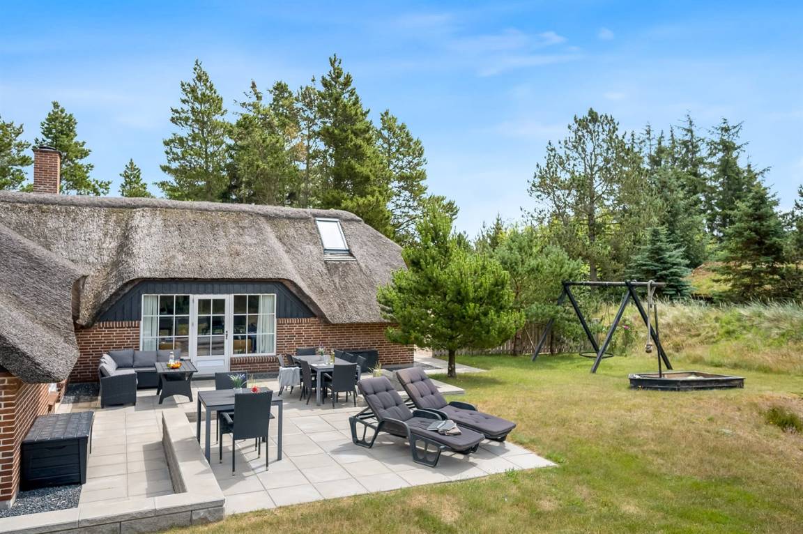 DraußenDie Ferienunterkunft liegt auf einem 2700 m² großen Naturgrundstück. Die Entfernung zum Meer beträgt 2500 m. Die nächste Einkaufsmöglichkeit liegt 1600 m entfernt. Es steht ein 65 m² Terrassenareal zur Verfügung. Außerdem gibt es 15 m² überdachte Terrasse. Geräteraum. Schaukel. Sandkasten. Es steht ein Grill zur Verfügung. Parkplatz auf dem Grundstück.