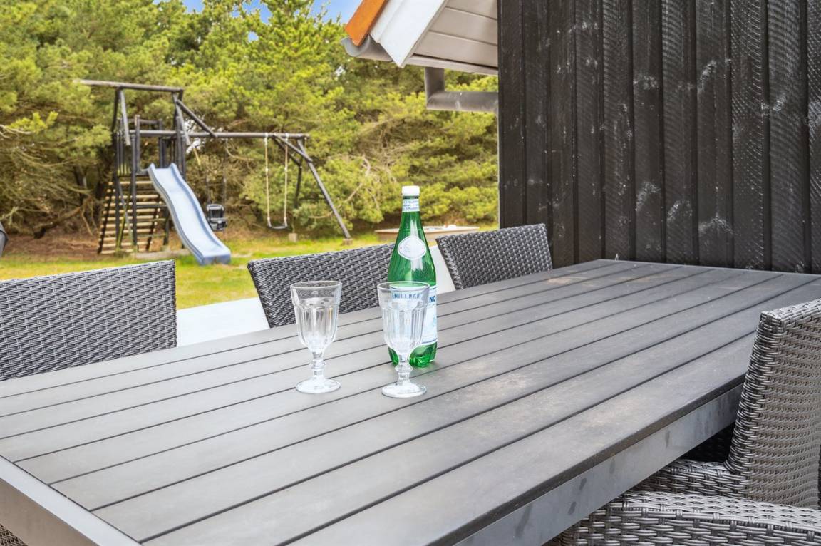 DraußenDie Ferienunterkunft liegt auf einem 2195 m² großen Naturgrundstück. Die Entfernung zum Meer beträgt 1300 m. Die nächste Einkaufsmöglichkeit liegt 1000 m entfernt. Es steht ein 70 m² Terrassenareal zur Verfügung. Geräteraum. Schaukel. Sandkasten. Rutsche. Es ist ein Ladestecker für Elektroautos installiert. Mit einer Ladeleistung von 11 kW. Parkplatz auf dem Grundstück.
