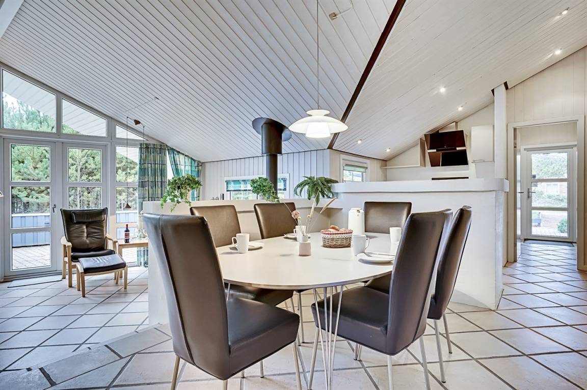 EinrichtungDas Ferienhaus eignet sich für 8 Personen sowie 1 Kleinkind bis zu 3 Jahren. Die Ferienunterkunft hat eine Wohnfläche von 118 m² und wurde 1997 gebaut. Haustiere dürfen nicht mitgebracht werden. Die Ferienunterkunft ist mit energiesparender Wärmepumpe ausgestattet. Die Ferienunterkunft ist mit Waschmaschine ausgestattet. Wäschetrockner. Tiefkühlmöglichkeit mit 73 Liter Nutzinhalt. Es gibt außerdem einen Kaminofen. Für die jüngsten Feriengäste ist 1 Kinderhochstuhl vorhanden.